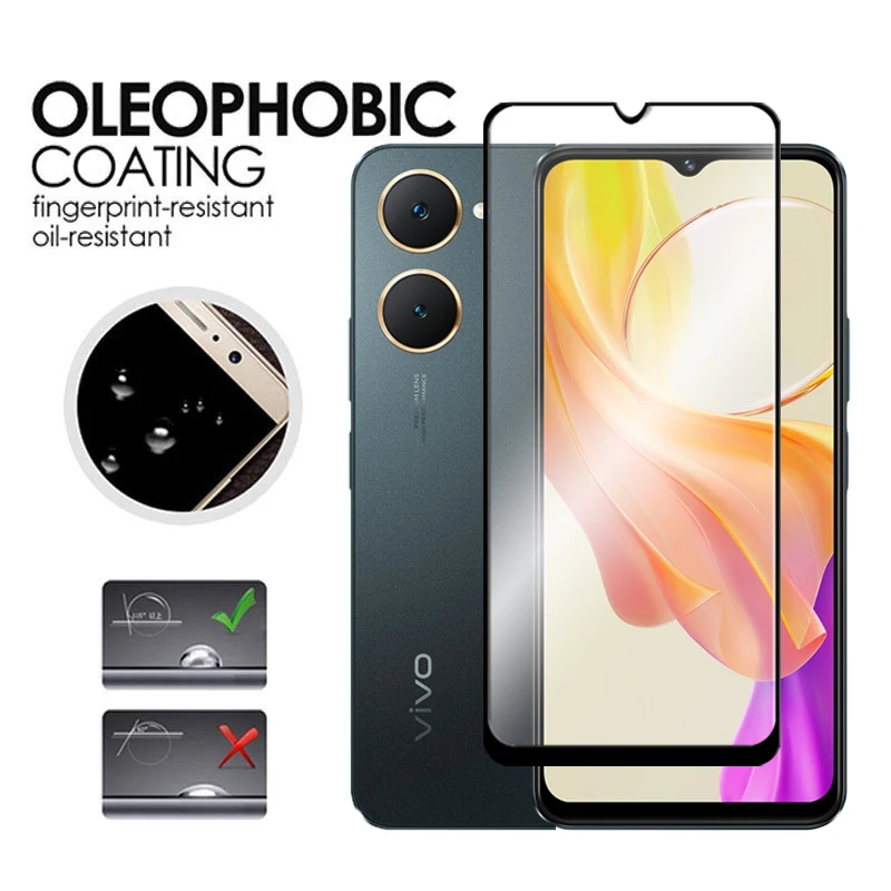 Comprar Para Vivo Y18 Protector de pantalla de vidrio de cubierta completa de 6,56 pulgadas para Vivo Y18e 18 vidrio templado para Vivo Y18e Y18 película de lente de cámara