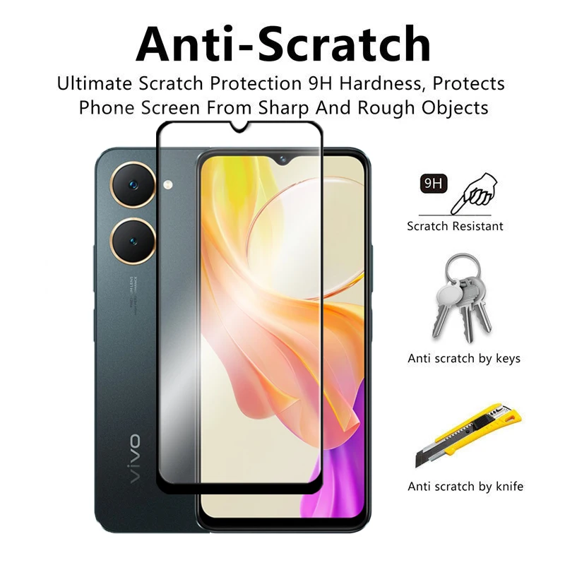 Para Vivo Y18 Protector de pantalla 6.56 pulgadas cubierta completa de cristal para Vivo Y18e 18 vidrio templado para Vivo Y18e Y18 película de lente de cámara