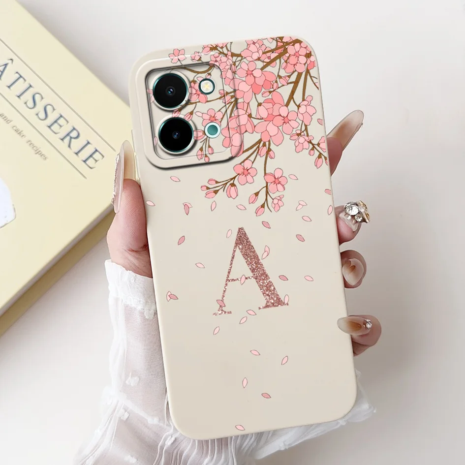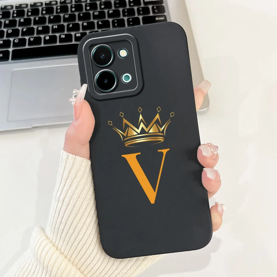 Para Vivo Y28 4G V2352 funda moda letras iniciales corona silicona suave mate TPU funda para Vivo Y28 4G Y 28 2024 capa a prueba de golpes