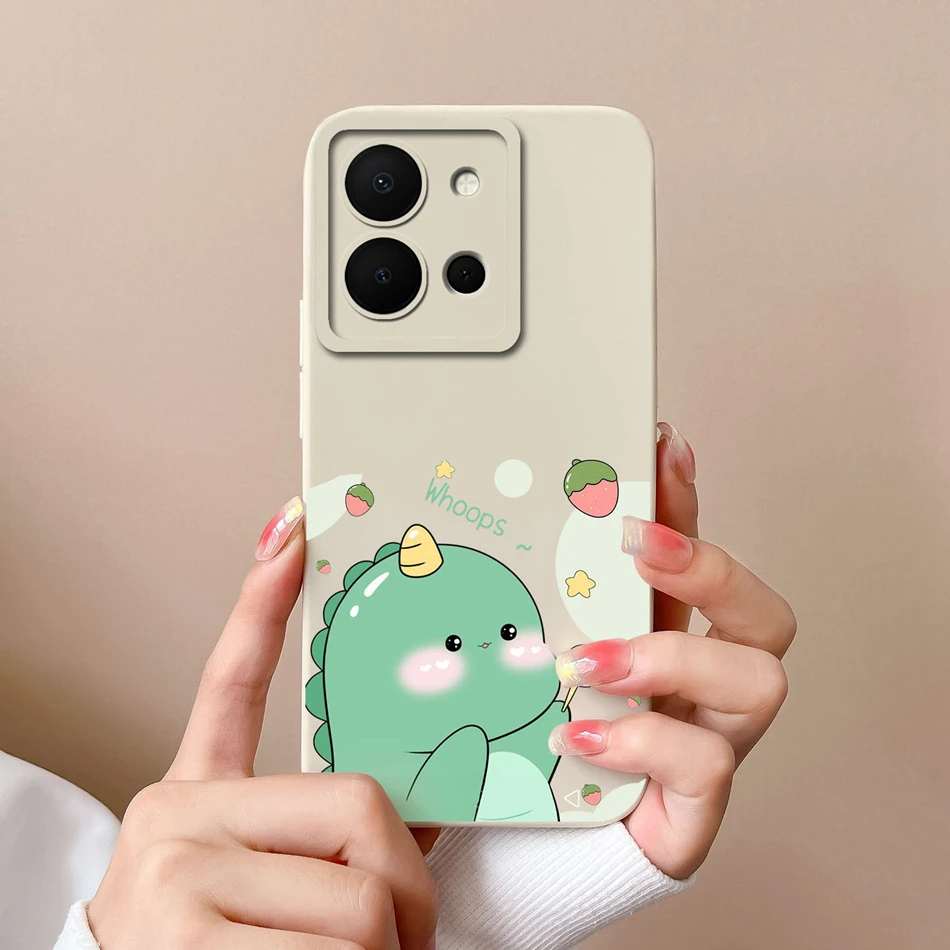 Comprar Para Vivo Y36 4G 5G funda dinosaurio suave silicona líquida protección completa Anti Choc carcasa de teléfono para Vivo Y 36 VivoY36 cubierta