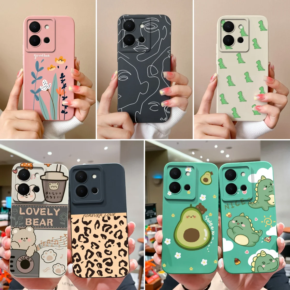 Viene en cuatro colores: negro oscuro, verde bosque, Rosa femenino y blanco cremoso. Cada color tiene un estilo diferente y un patrón de dibujos animados único, agregando un toque de diversión y personalidad a su teléfono para adaptarse a sus preferencias.