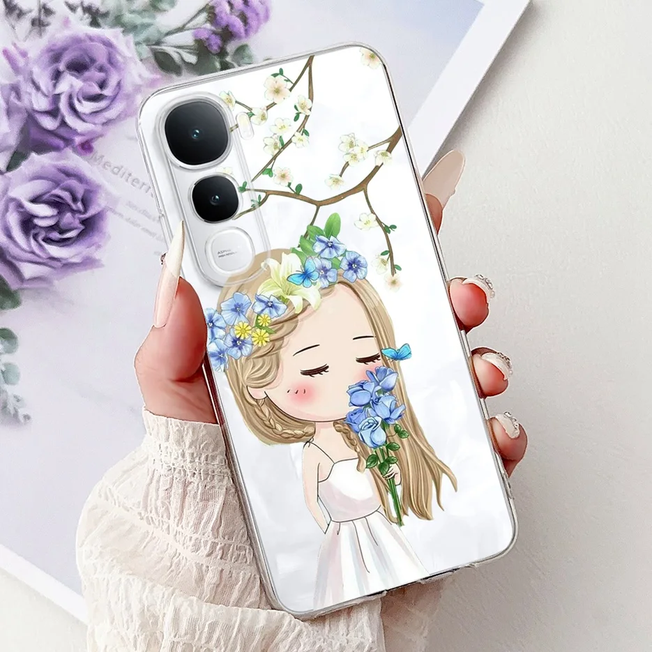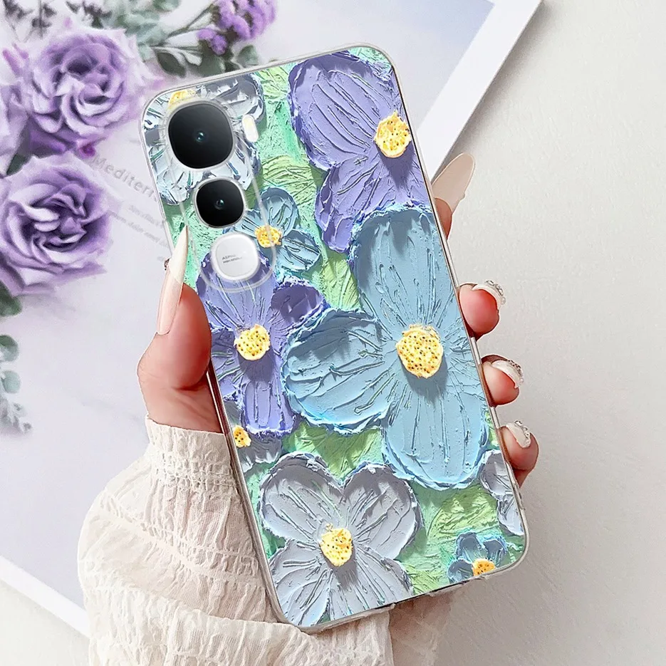 Para Vivo Y400 4G funda VivoY400 V2506 moda gato flores cubierta pintada funda de teléfono de silicona suave para Vivo Y400 Pro 5G Fundas bolsas