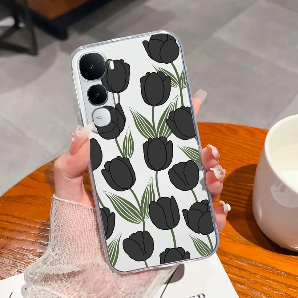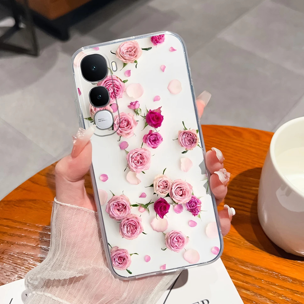 Para Vivo Y400 5G funda de teléfono encantador oso flores suave transparente TPU silicona ligera funda protectora para Vivo Y 400 Shell - imagen 5