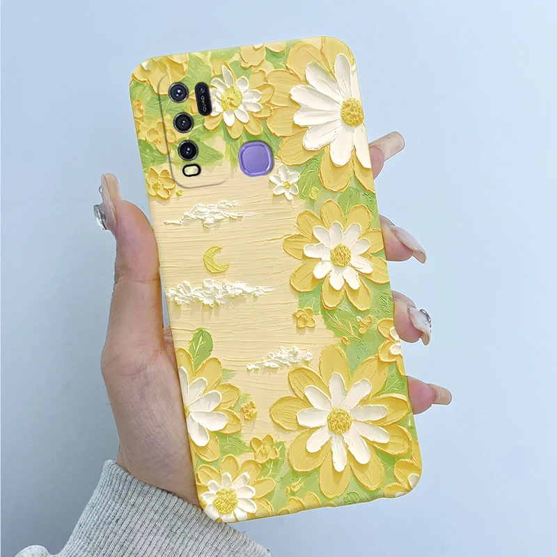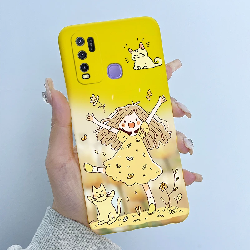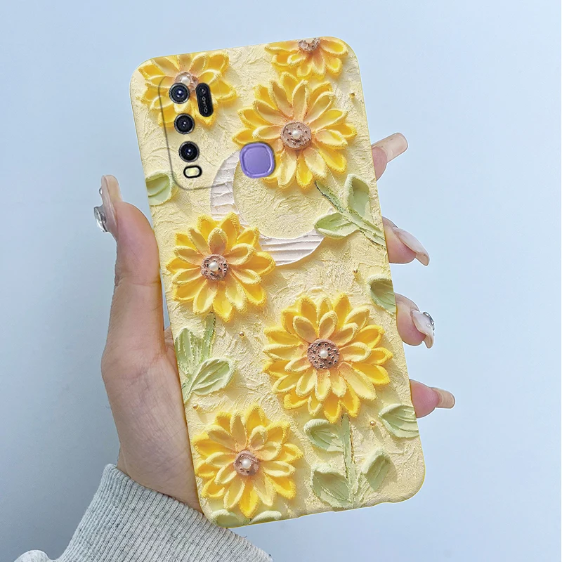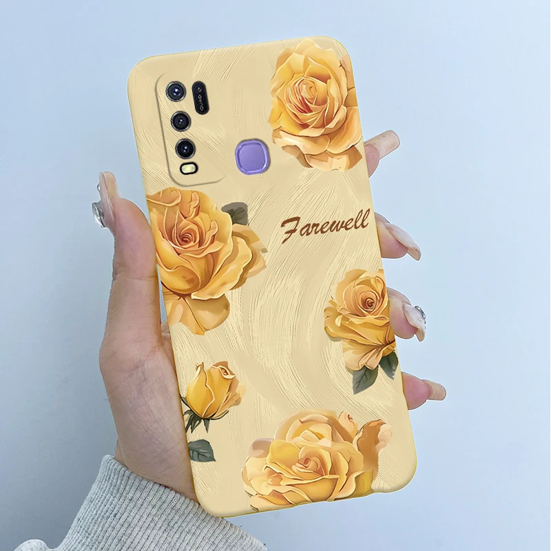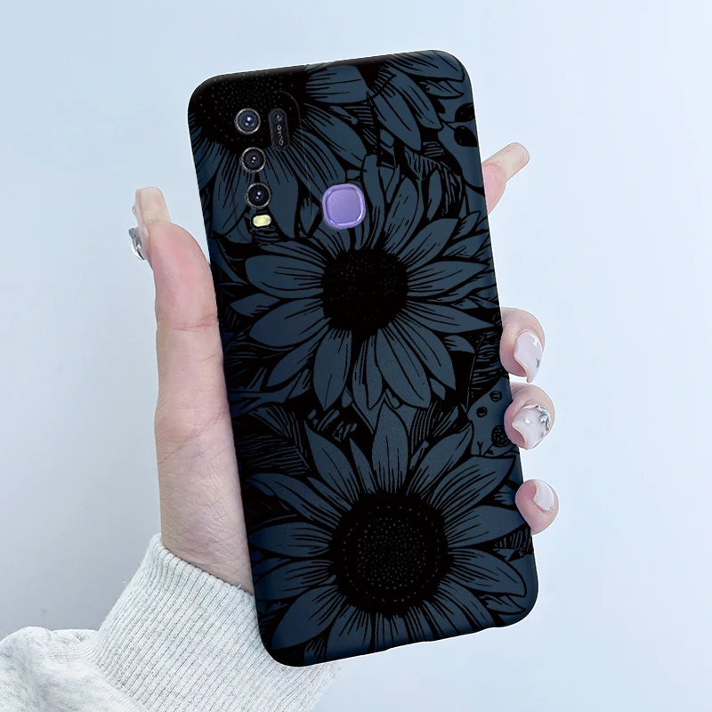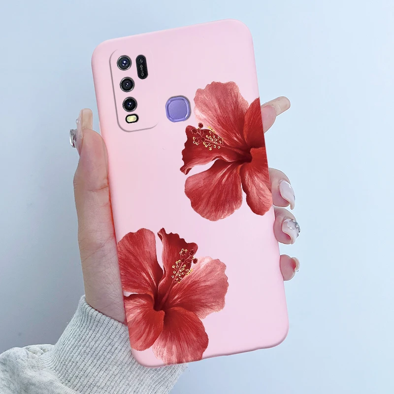 Comprar Para Vivo Y50 1935 Funda colorida de dibujos animados de flores Funda protectora de silicona suave para Vivo Y30 1938 Funda Y 50 Y 30 Coque a prueba de golpes