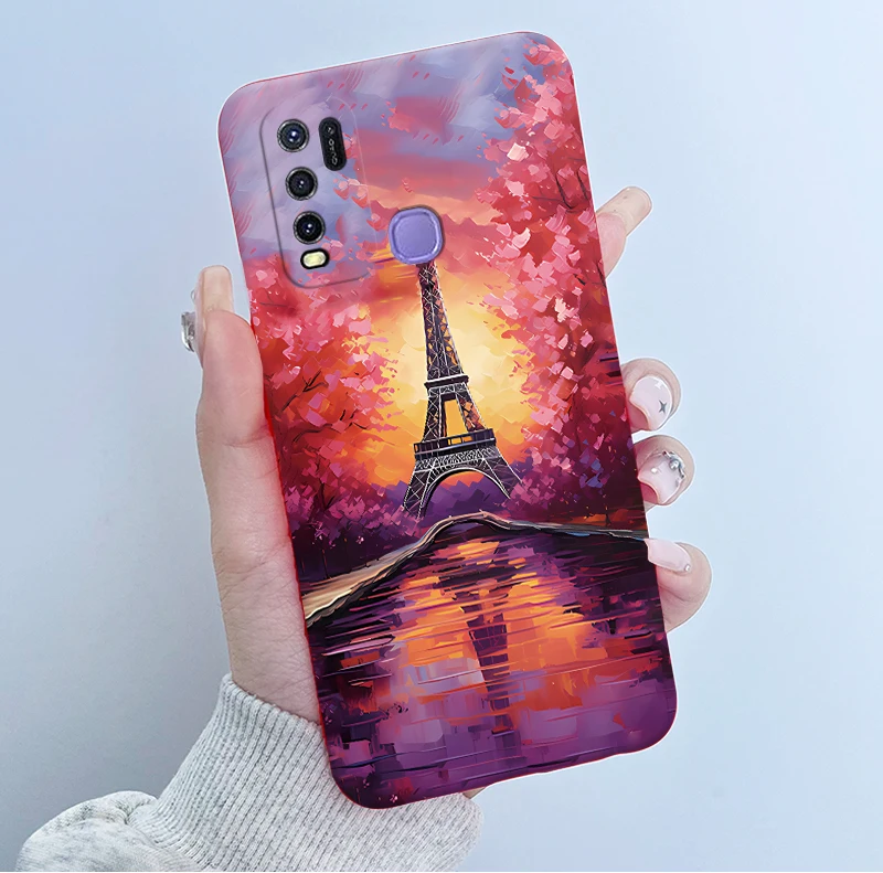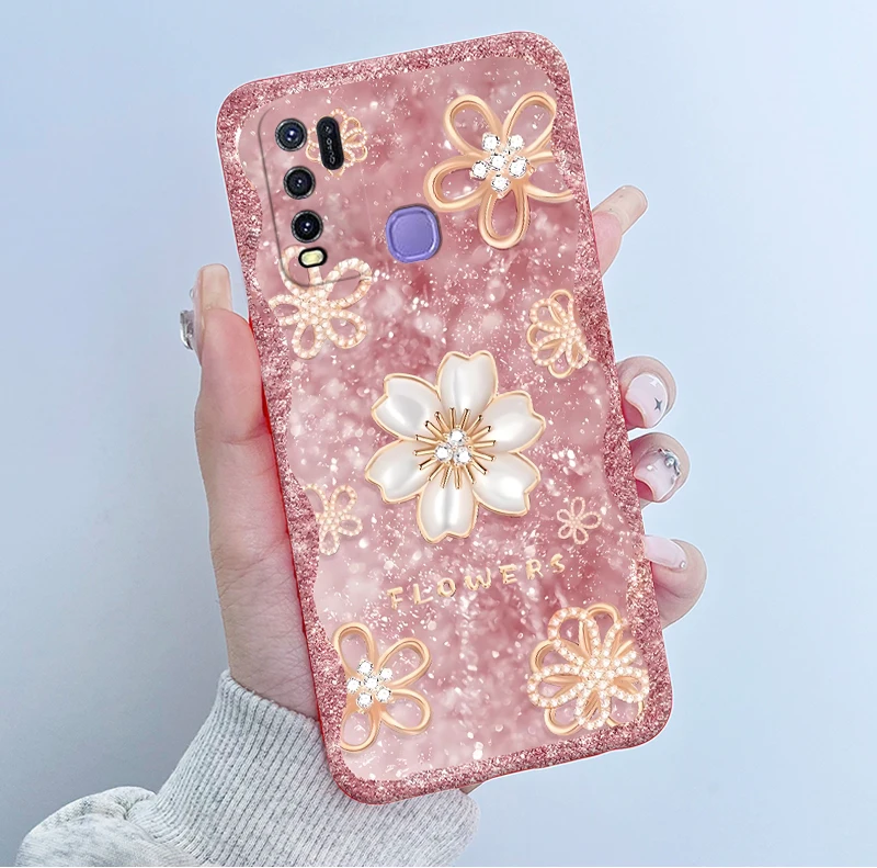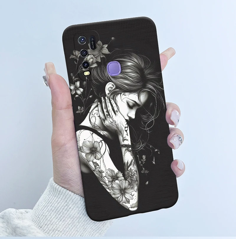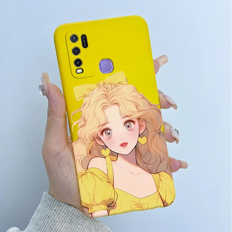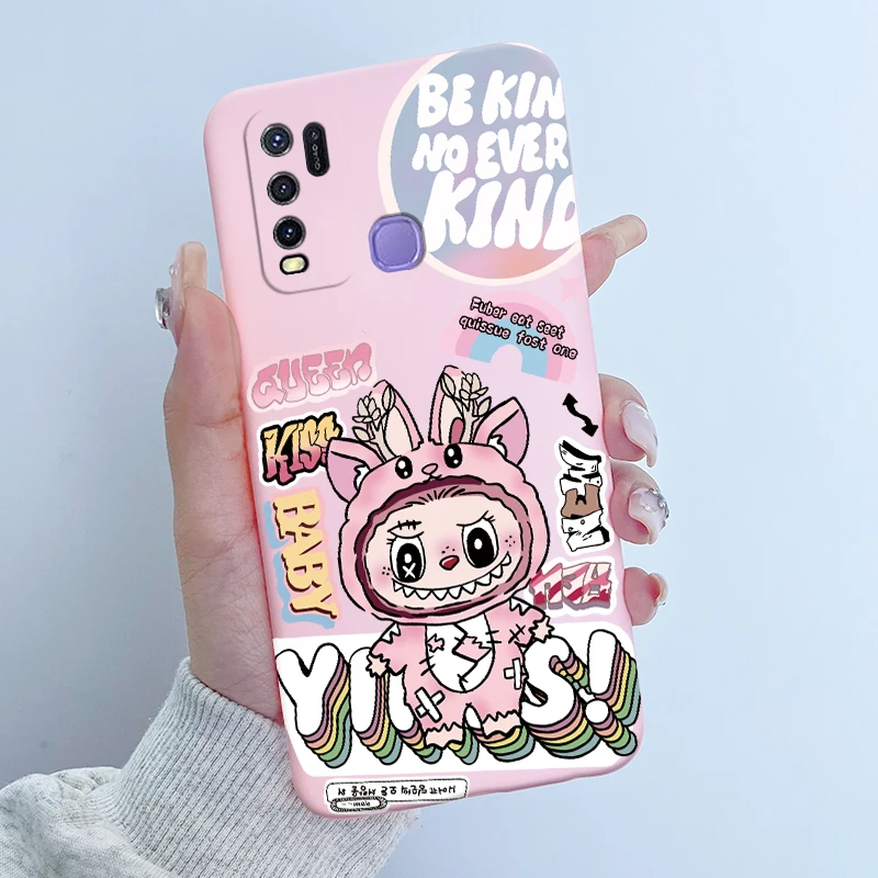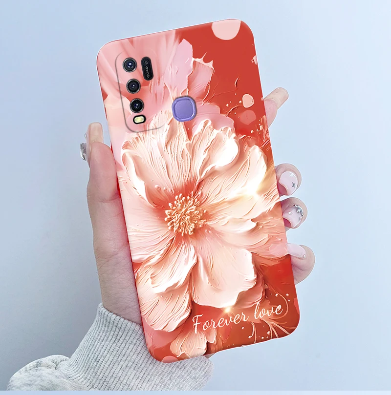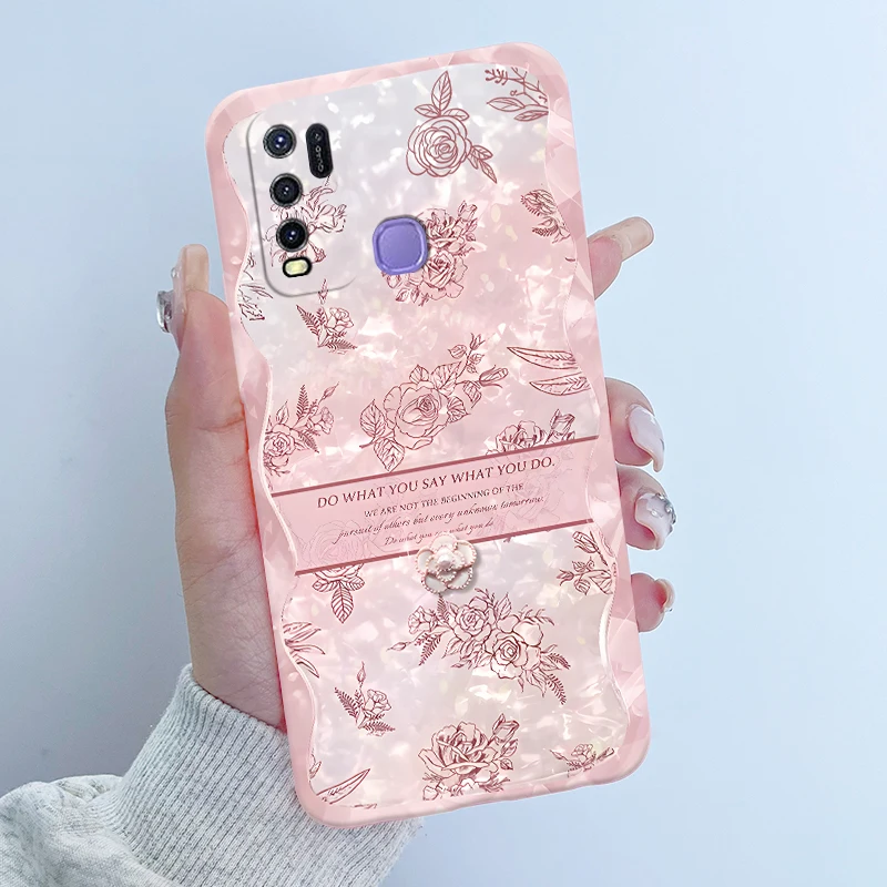 Comprar Para Vivo Y50 1935 Funda colorida de dibujos animados de flores Funda protectora de silicona suave para Vivo Y30 1938 Funda Y 50 Y 30 Coque a prueba de golpes