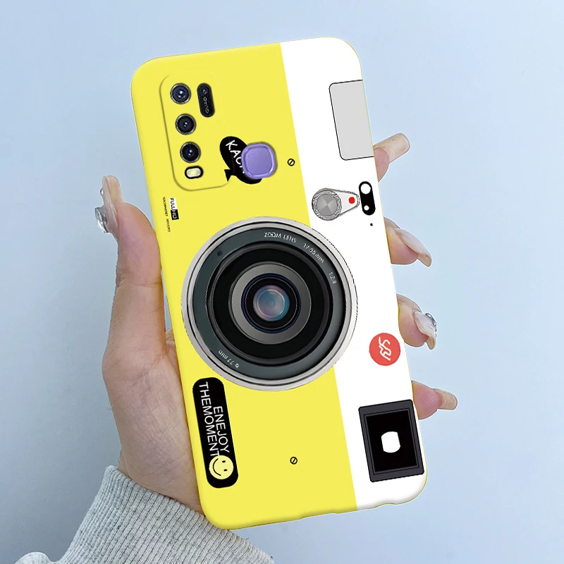 Para Vivo Y50 1935 Funda colorida de dibujos animados de flores Funda protectora de silicona suave para Vivo Y30 1938 Funda Y 50 Y 30 Coque a prueba de golpes