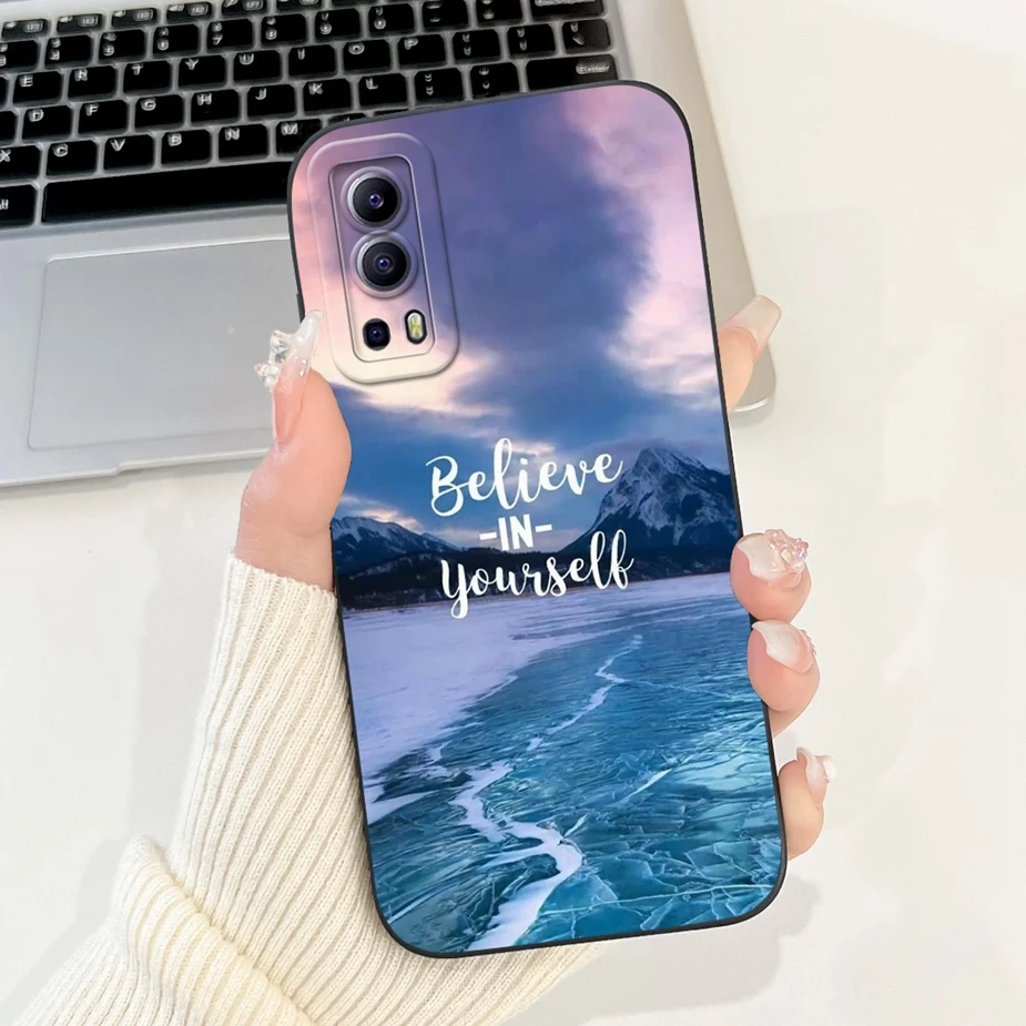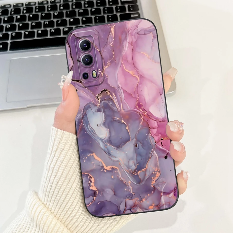 Para Vivo Y52 5G funda V2053 elegante flores caramelo pintado funda de teléfono para Vivo Y72 5G Y 52 VivoY52 VivoY72 V2041 Fundas suaves