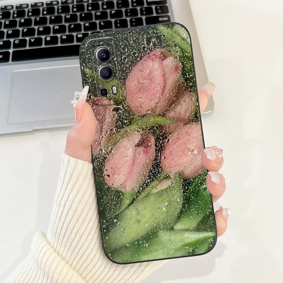 Para Vivo Y52 5G funda V2053 elegante flores pintura a caramelo funda de teléfono para Vivo Y72 5G Y 52 VivoY52 VivoY72 V2041 Fundas suaves