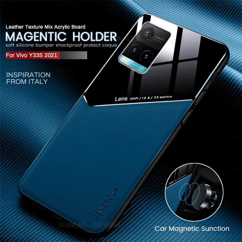 Funda Vivoy33s para coche, soporte magnético, funda de teléfono de cuero para Vivo Y33s Y 33 S 33 S 2021 4G V2109 6,58 ", funda de parachoques suave a prueba de golpes