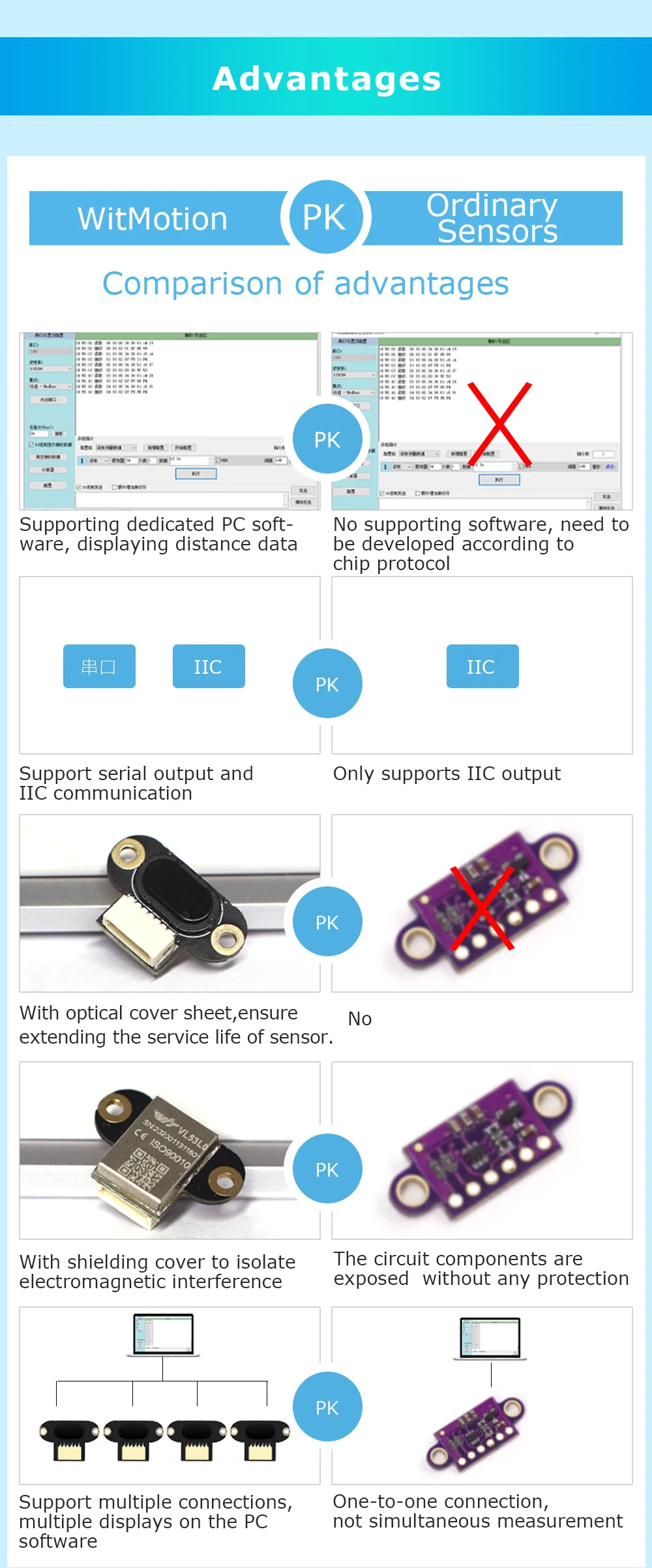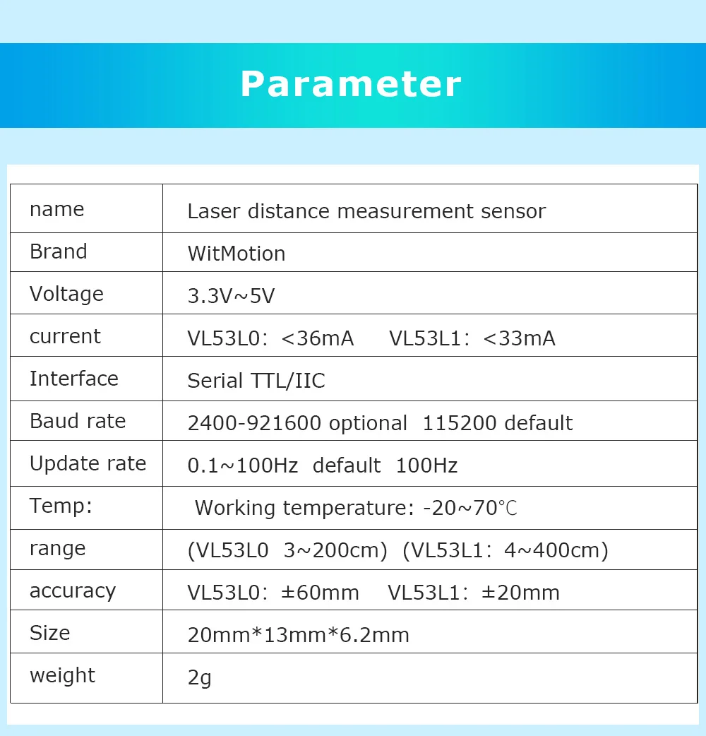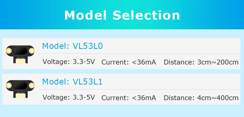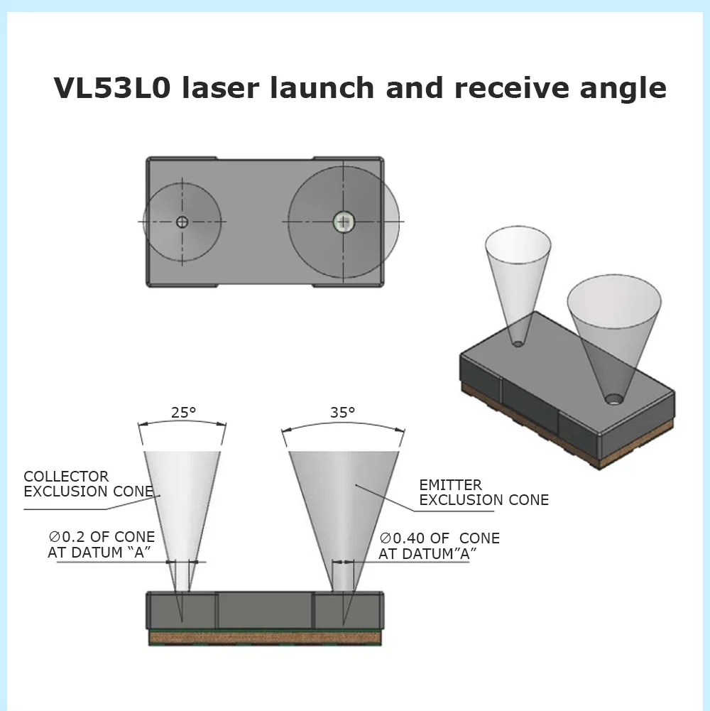 Comprar VL53L0 VL53-400 VL53 Módulo de sensor de distancia láser Serial TTL IIC I2C 3-200 cm 4-400 cm 3,3-5 V