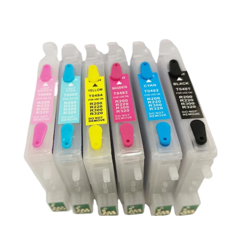 Vliaxh Empty T0481 - T0486 Cartucho de tinta recargable para EPSON STYLUSPhotoRX500/RX600/R300/R300M/R200/R220/R320/R340/RX620