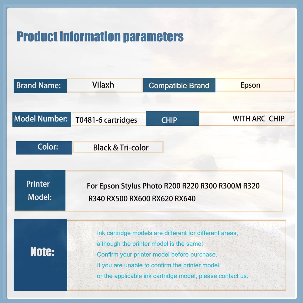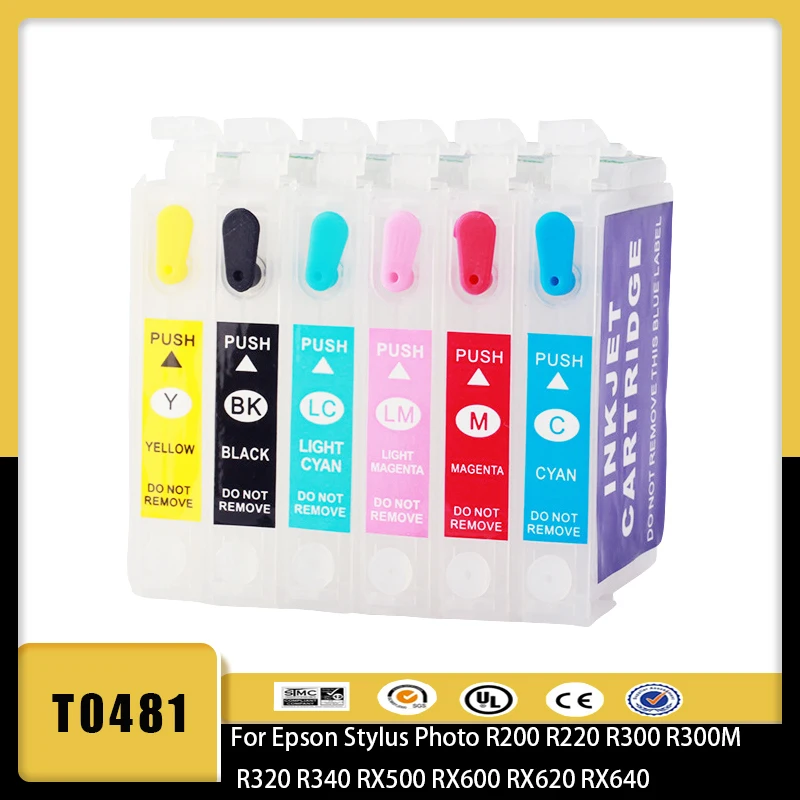 Vliaxh Empty T0481 - T0486 Cartucho de tinta recargable para EPSON STYLUSPhotoRX500/RX600/R300/R300M/R200/R220/R320/R340/RX620