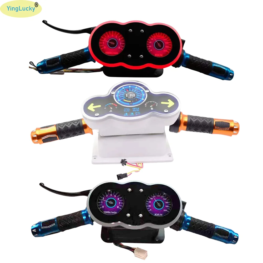 Volante de súper motocicleta, manillar LED con medidores, Kit de bricolaje, máquina de videojuegos de carreras de simulación para niños Arcade