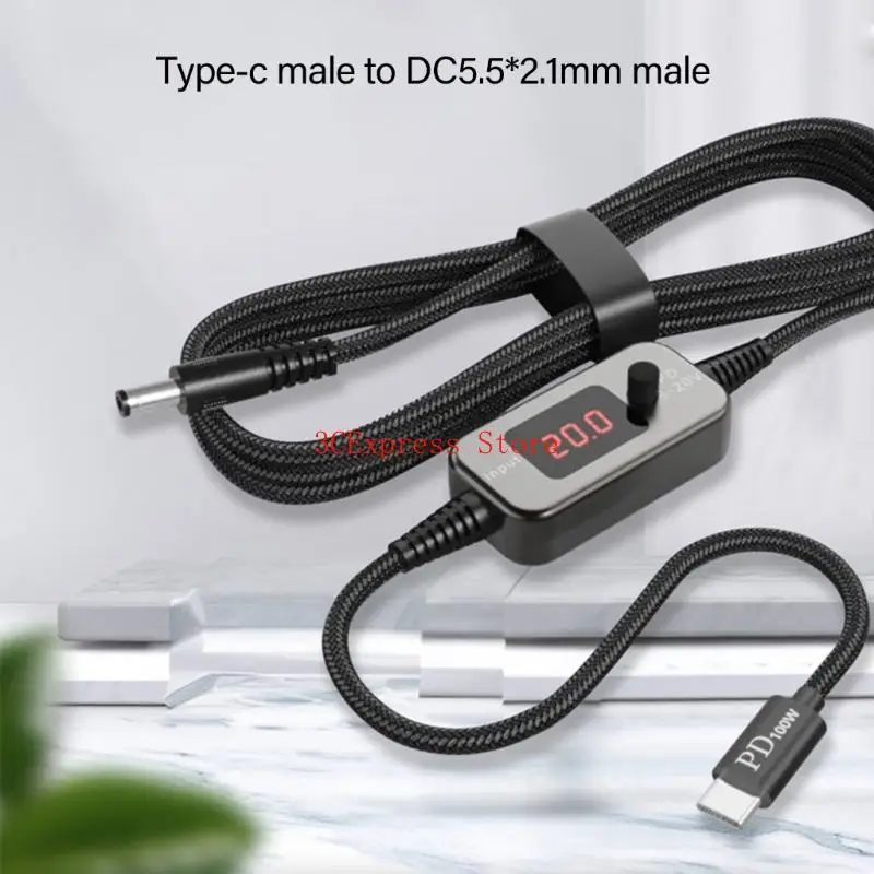 Características:OOTDTYEl cable adaptador PD100W a CC 5,5x2,5 mm ofrece una salida ajustable de 5 V/9 V/12 V/15 V/20 V que garantiza una amplia compatibilidad para enrutadores, portátiles y dispositivos potentes de hasta 100 W.