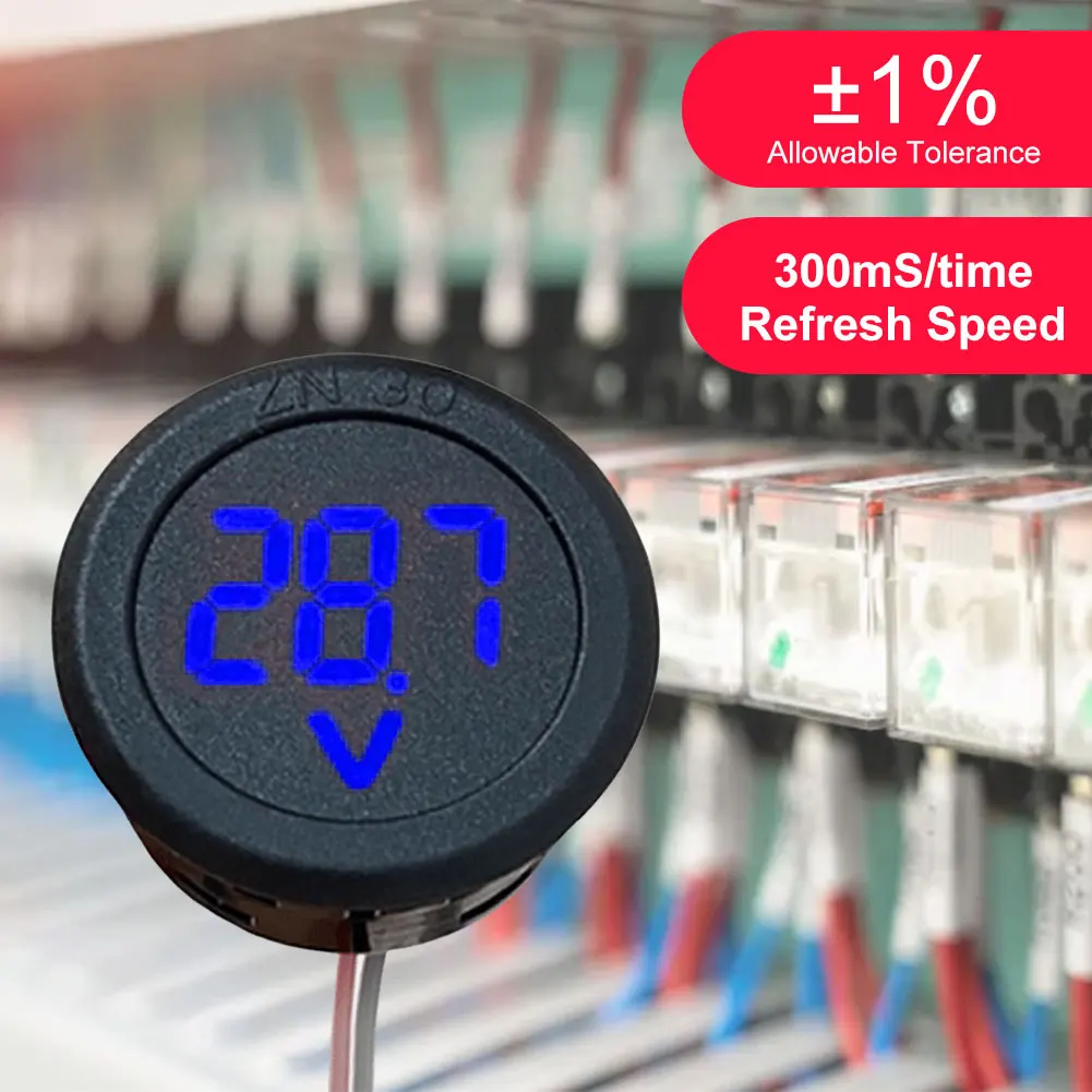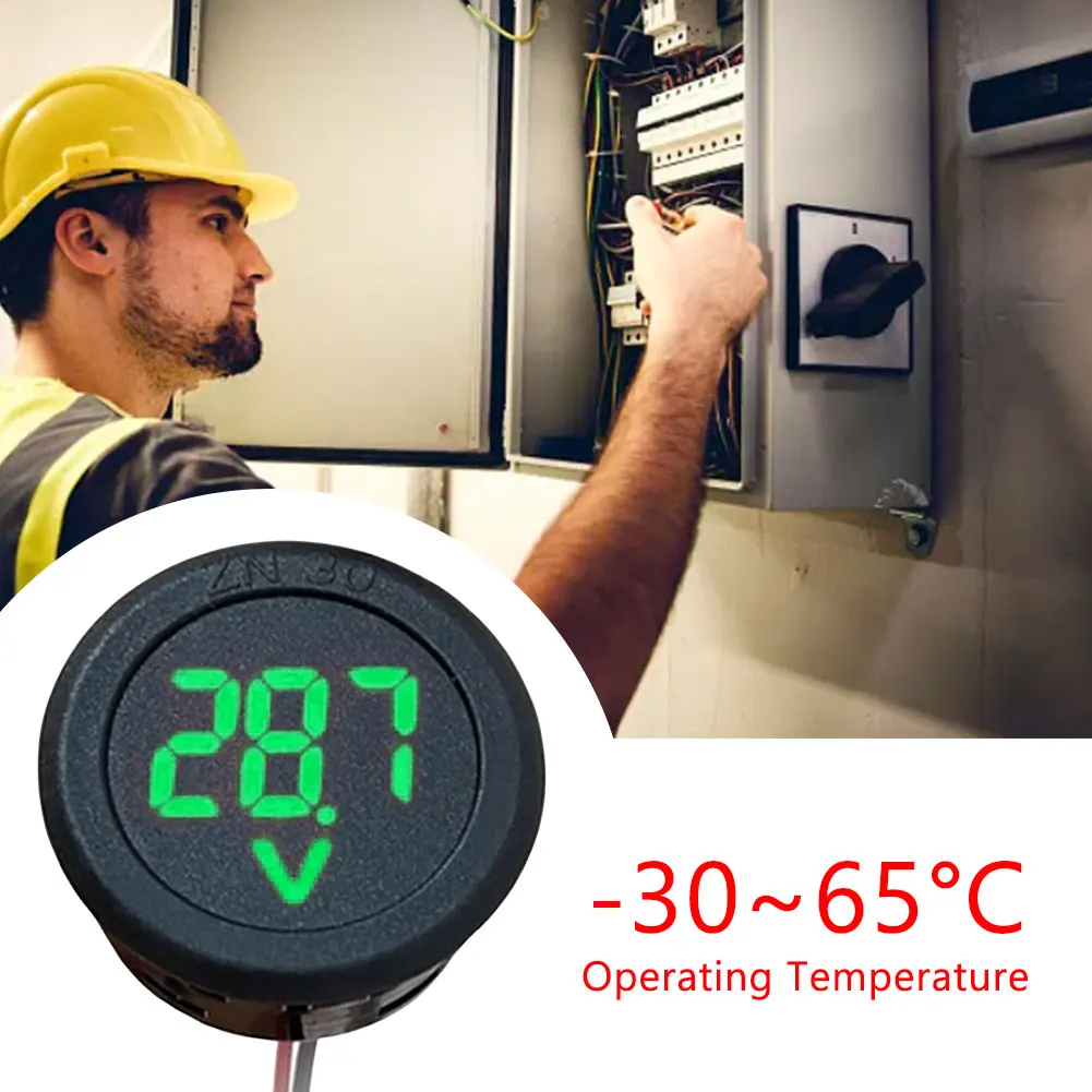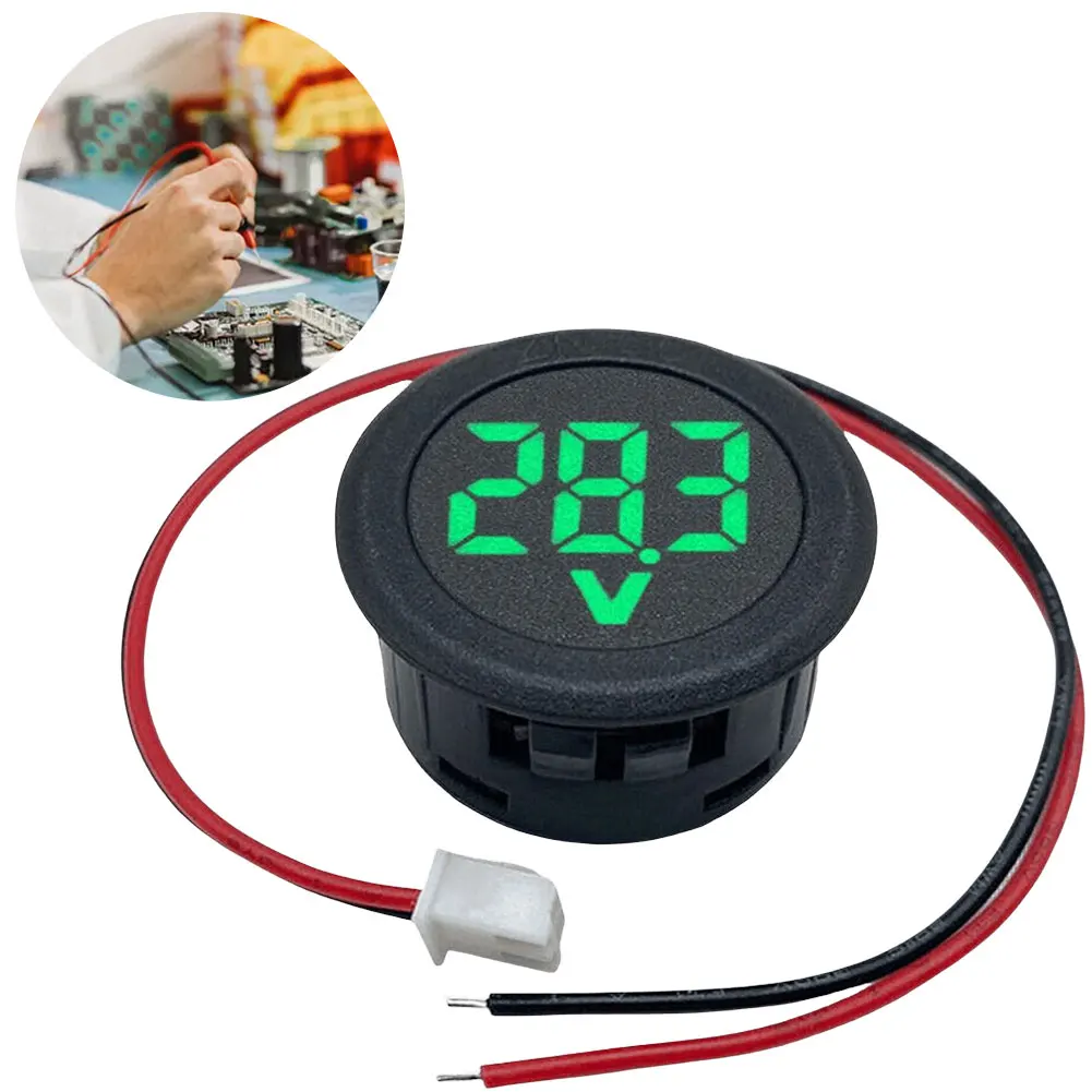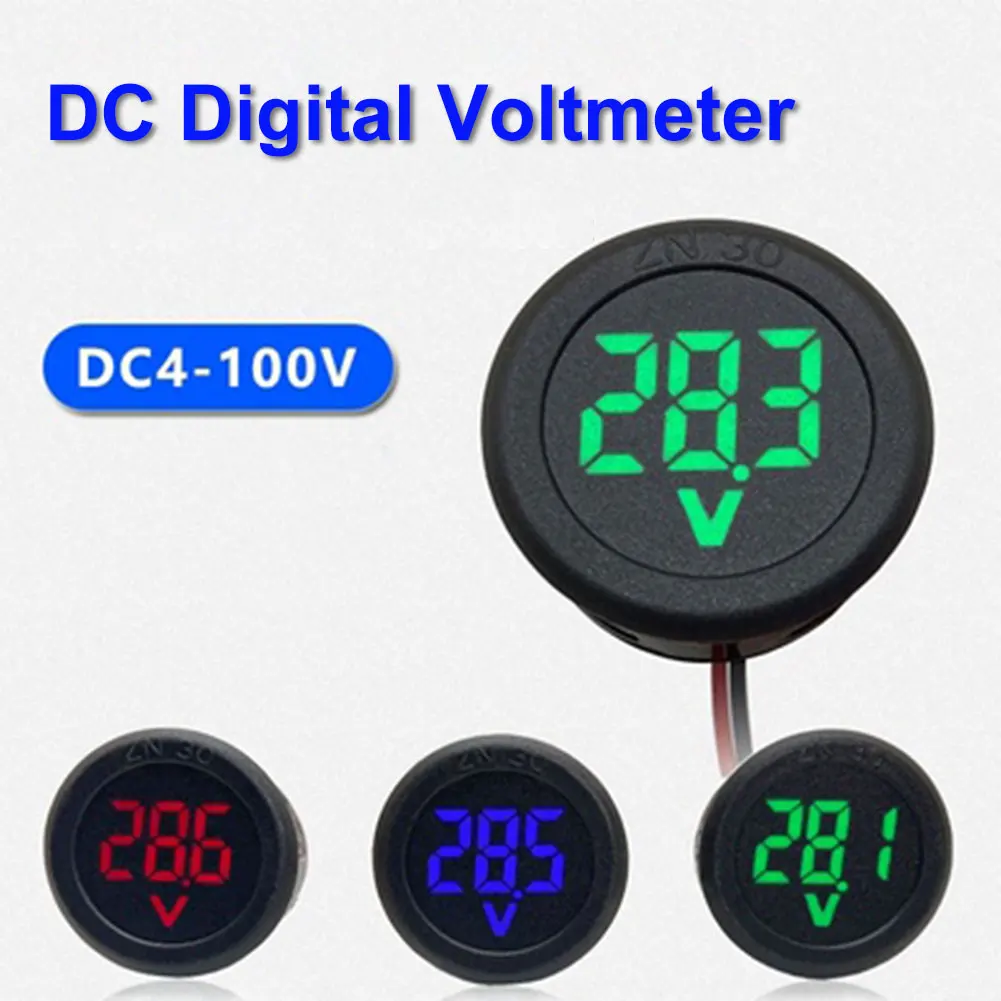 Comprar Voltímetro Circular de dos cables DC 4-100V pantalla Digital LED programable cabezal de voltímetro redondo medidores de voltaje pequeños herramienta de prueba de voltios