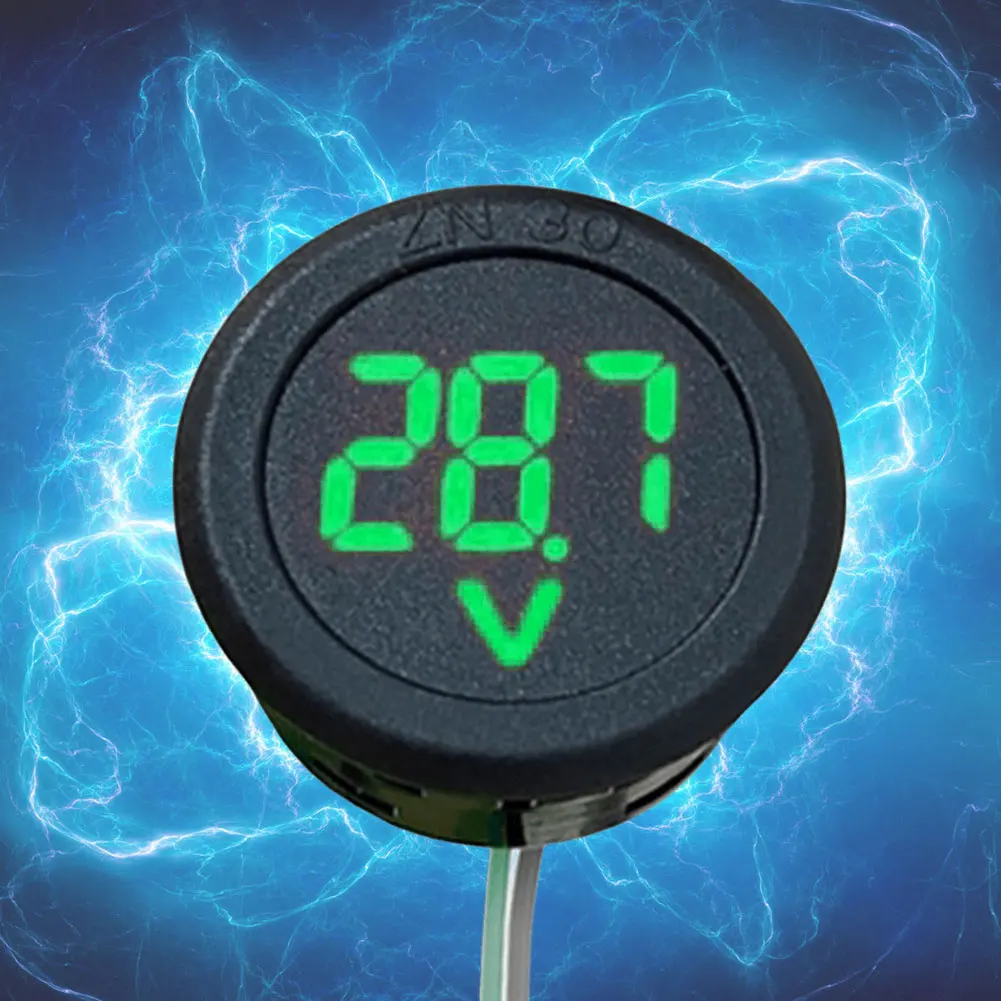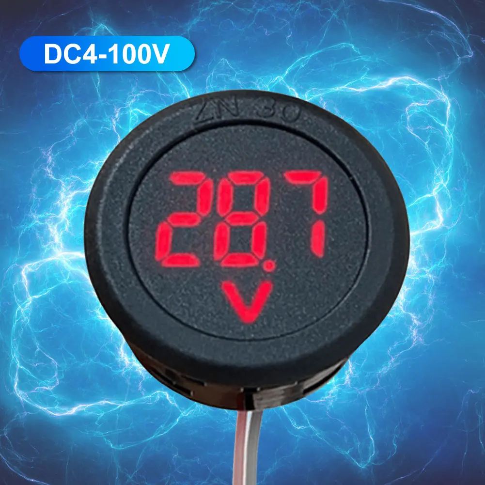 Voltímetro circular de dos cables DC 4-100V Protección de conexión inversa Pantalla digital LED Cabezal de voltímetro digital DC Cabezal de voltímetro redondo programable Herramienta de medición de voltaje pequeño
