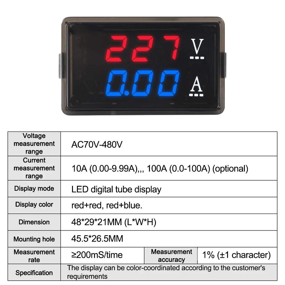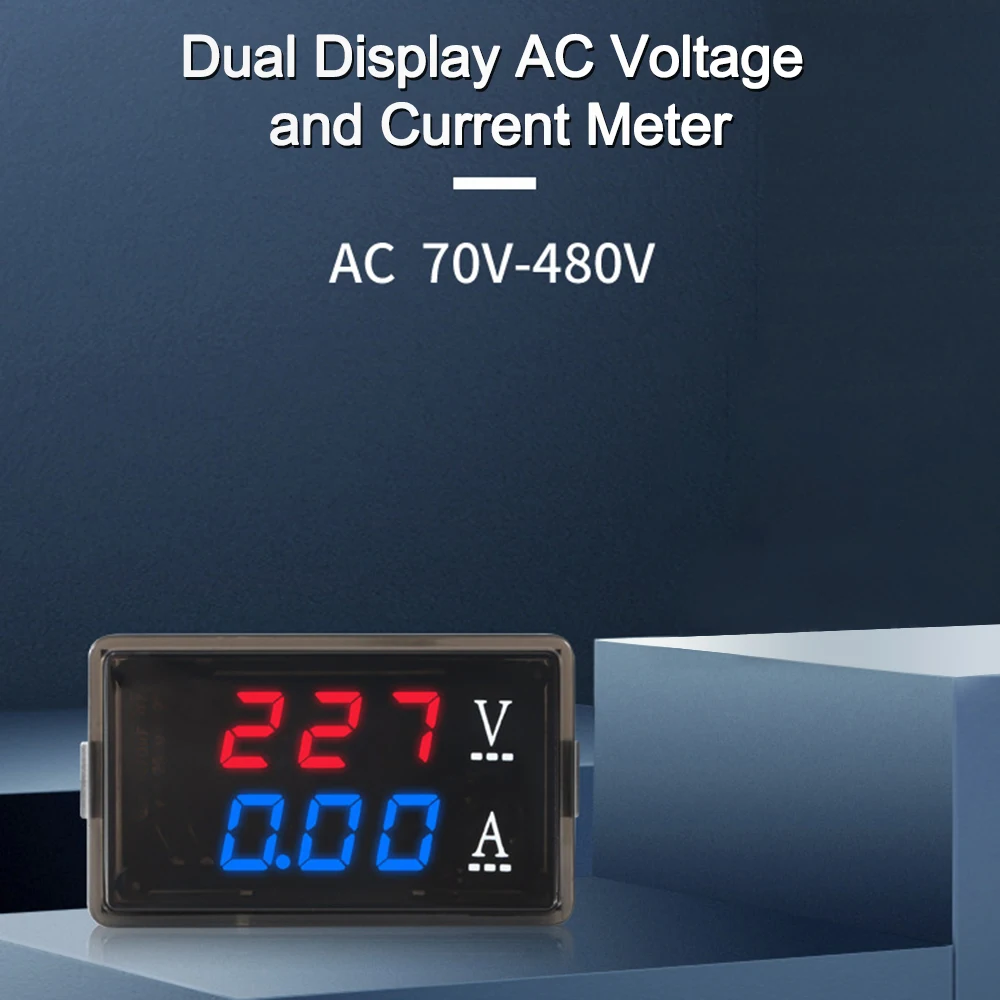 1 x voltímetro digital amperímetro AC70-480V 10A 100A azul + LED rojo amplificador digital dual voltímetro medidor
