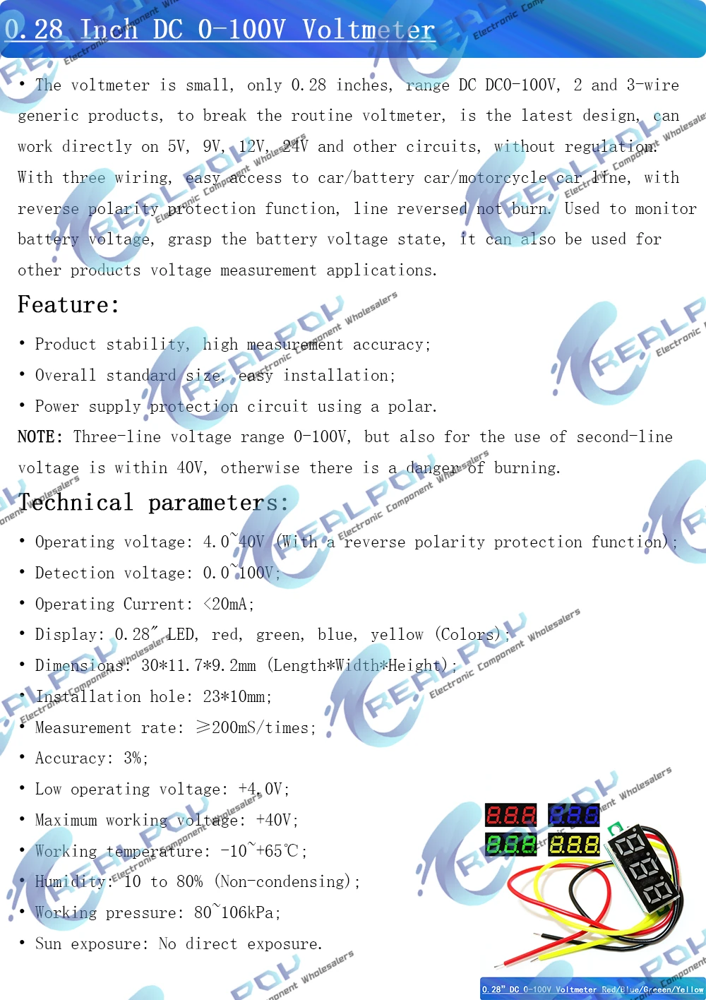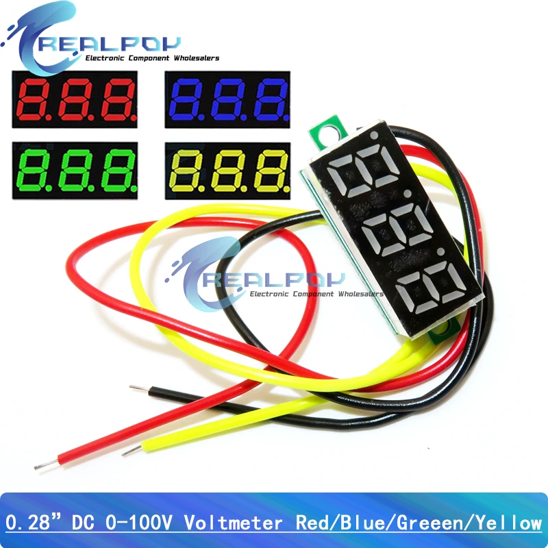 Comprar Voltímetro Digital LED de CC de 0,28 pulgadas, medidor de voltaje de 0-100V, Detector de voltaje de energía móvil para automóvil, 12V, rojo, verde, azul, amarillo