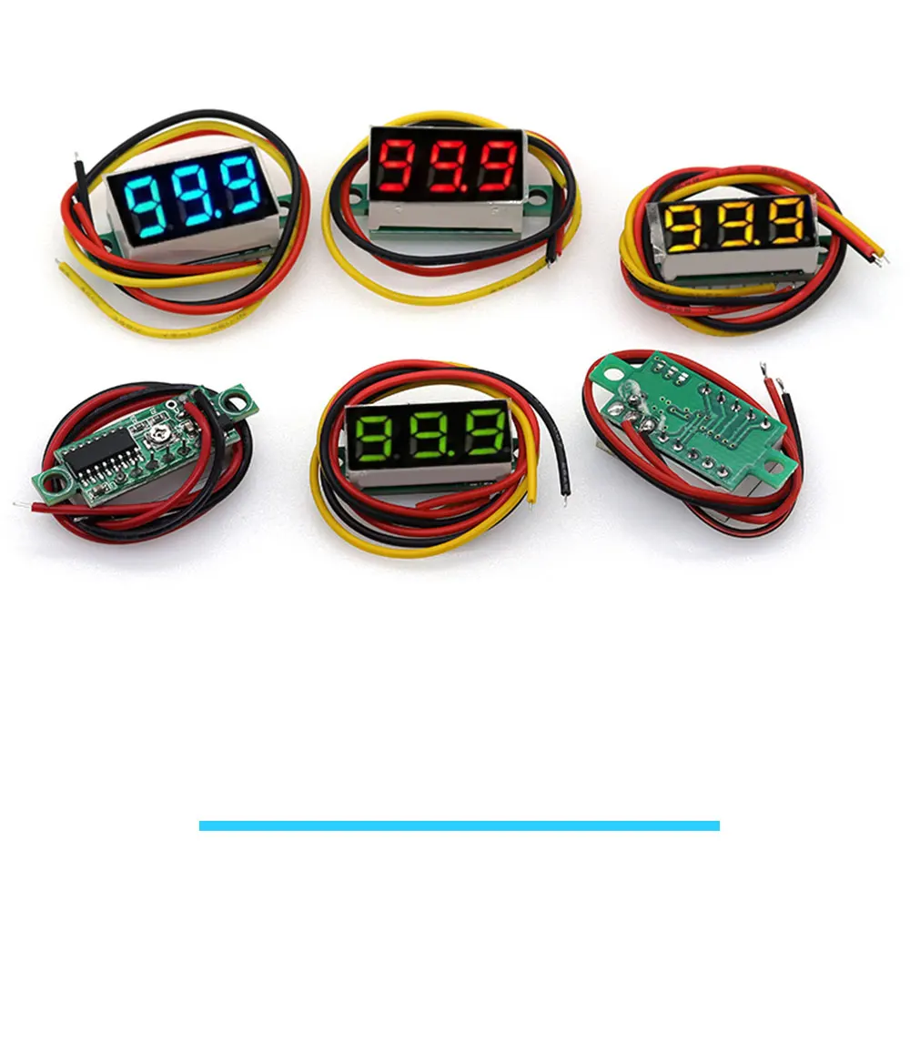 Voltímetro 0,36"Voltaje de funcionamiento de 2 cables: 40-30V (con función de protección inversa)Voltaje de detección de 2 cables: 40-30VVoltaje DE FUNCIONAMIENTO DE 3 cables: 40-30V (con función de protección inversa)Voltaje de detección de 3 cables: 0-100VCorriente de trabajo: 20mAModo de visualización: LED de 0,36 ", rojo, azul, verde (Color opcional) orificio de montaje: 23x10mmVelocidad de medición: 200ms/horaPrecisión de medición: 3%Bajo voltaje de trabajo: 4,0 VAlto voltaje de trabajo: 30VTemperatura de trabajo: 10 ~ + 65 ℃Humedad de trabajo: 10 ~ 80% (sin condensación)Presión de trabajo: 80 ~ 106kpaLuz solar: sin exposición directaCaracterísticas principales: buena estabilidad del producto, alta precisión lateral, instalación conveniente con tamaño estándar y circuito de protección de polaridad para fuente de alimentación.Voltímetro 0,28"Pantalla digital de medidor de voltaje de CC digital pequeño de 0,28 pulgadasDos cables de 0,28 pulgadas pequeña pantalla digital medidor de voltaje de CC dc2.5-40v Protección de conexión inversa ajustable, dos cables, cableado conveniente y simple, acceso conveniente a las líneas de batería de automóvil, función de protección de conexión inversa, conexión de cable quema inversa, función de ajuste fino1. Rango: 4-40V (rojo) 4-40V (amarillo) 4-40V (verde) 4-40V (azul)2. Equipado con dos cables, el cableado es conveniente y simple, y es conveniente acceder a las líneas en la batería del automóvil/modelo de automóvil3. Tiene función de protección de conexión inversa, la conexión inversa del cable no se quemará y tiene función de ajuste fino4. Preste atención a que el voltaje de entrada no puede exceder los 40V, de lo contrario existe riesgo de agotamiento. 5. Cuando el voltaje es inferior a 3,0 V, el brillo de la pantalla se oscurecerá, pero no afectará la medición normal6. Al medir el voltaje por debajo de 10V, muestre un dígito después del punto decimal, es decir, puede ocuparse de las necesidades de los usuarios de la batería, la precisión de la medición y la medición de alto voltajeModo de visualización: 0.28ed, rojo, azul, verde, amarillo (Color opcional) Voltaje de funcionamiento: DC4 ~ 40V (con función de protección inversa) Comprobar voltaje DC4 ~ 40V Voltaje de funcionamiento: menos de 30mA Tasa de medición: ≥ 200ms/tiempo Precisión de medición: 3% Voltaje de funcionamiento inferior: + 24V Alto voltaje de funcionamiento: + 40V Temperatura de trabajo: 0 + 65 ℃ Humedad de trabajo: 10 ~ 80% (sin condensación) Presión de trabajo: 80 ~ 106kpa Luz solar: sin exposición directa Precisión de medición. El voltímetro moverá automáticamente la posición del punto decimal de acuerdo con el voltaje de medición diferente. Al medir el voltaje a 10V, se mostrarán dos decimales después del punto decimal. Al medir un voltaje superior a 10V, se mostrará un lugar decimal después del punto decimal. Este voltímetro se puede utilizar para medir 18650 baterías y baterías de litio móviles El voltaje de piscinas, baterías NiMH y otras baterías, así como baterías para motocicletas, automóviles, etc. También se puede utilizar para otros fines de medición de voltaje
