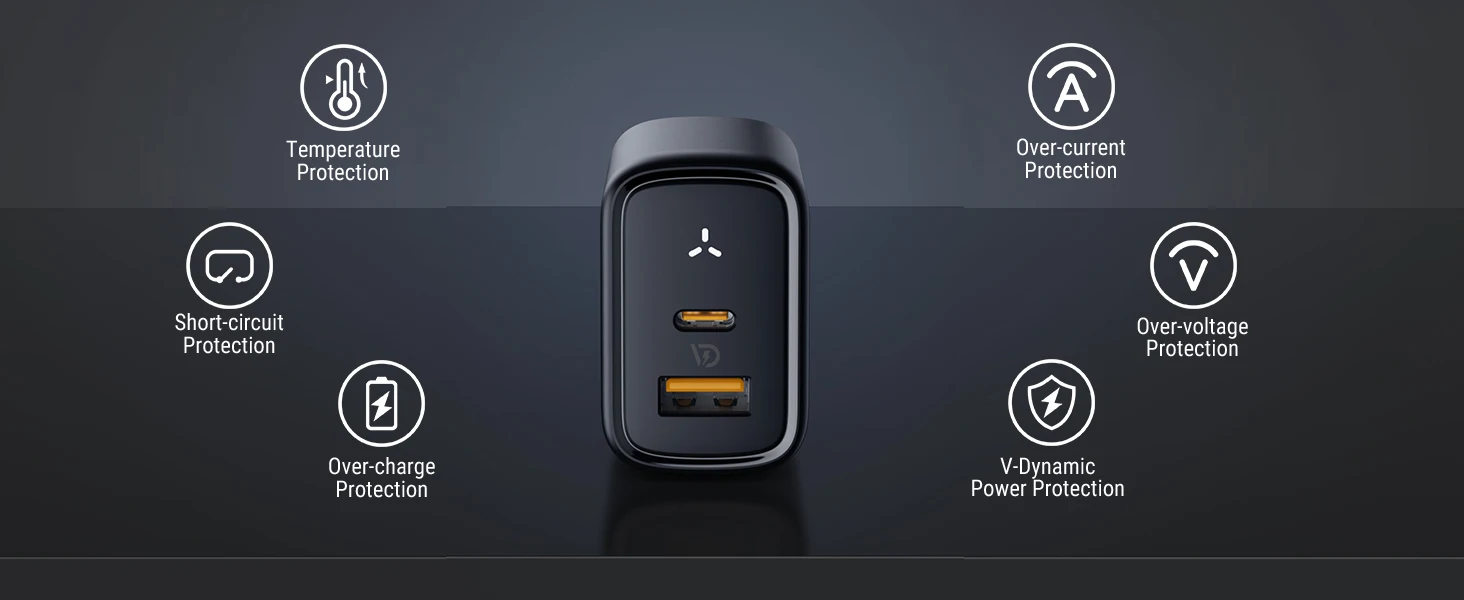 La fuente de alimentación USB está hecha de material ignífugo y la exclusiva tecnología V-Dynamic voltme incorporada protege su dispositivo y el propio cargador contra sobrecargas, sobrecalentamiento, cortocircuitos, etc.Cumple con los estándares de seguridad, lo que garantiza la máxima seguridad de carga.
