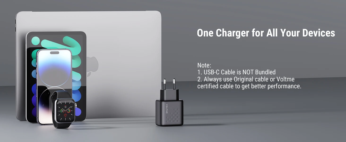 Los cargadores rápidos VOLTME USB C adoptan la última tecnología V-Dynamic que proporciona una carga más segura y confiable.