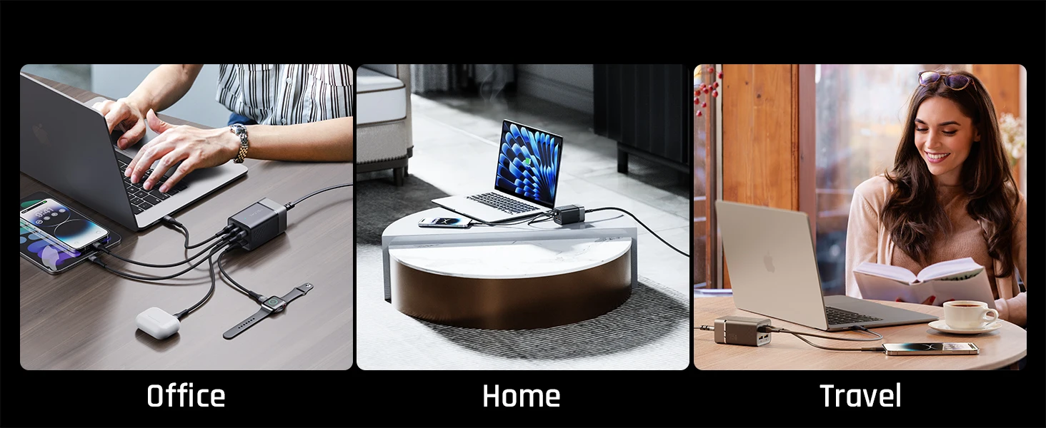 El cargador de escritorio VITO 75W es compatible con más de 2000 dispositivos inteligentes como computadoras portátiles, tabletas, teléfonos inteligentes, relojes inteligentes y auriculares.
