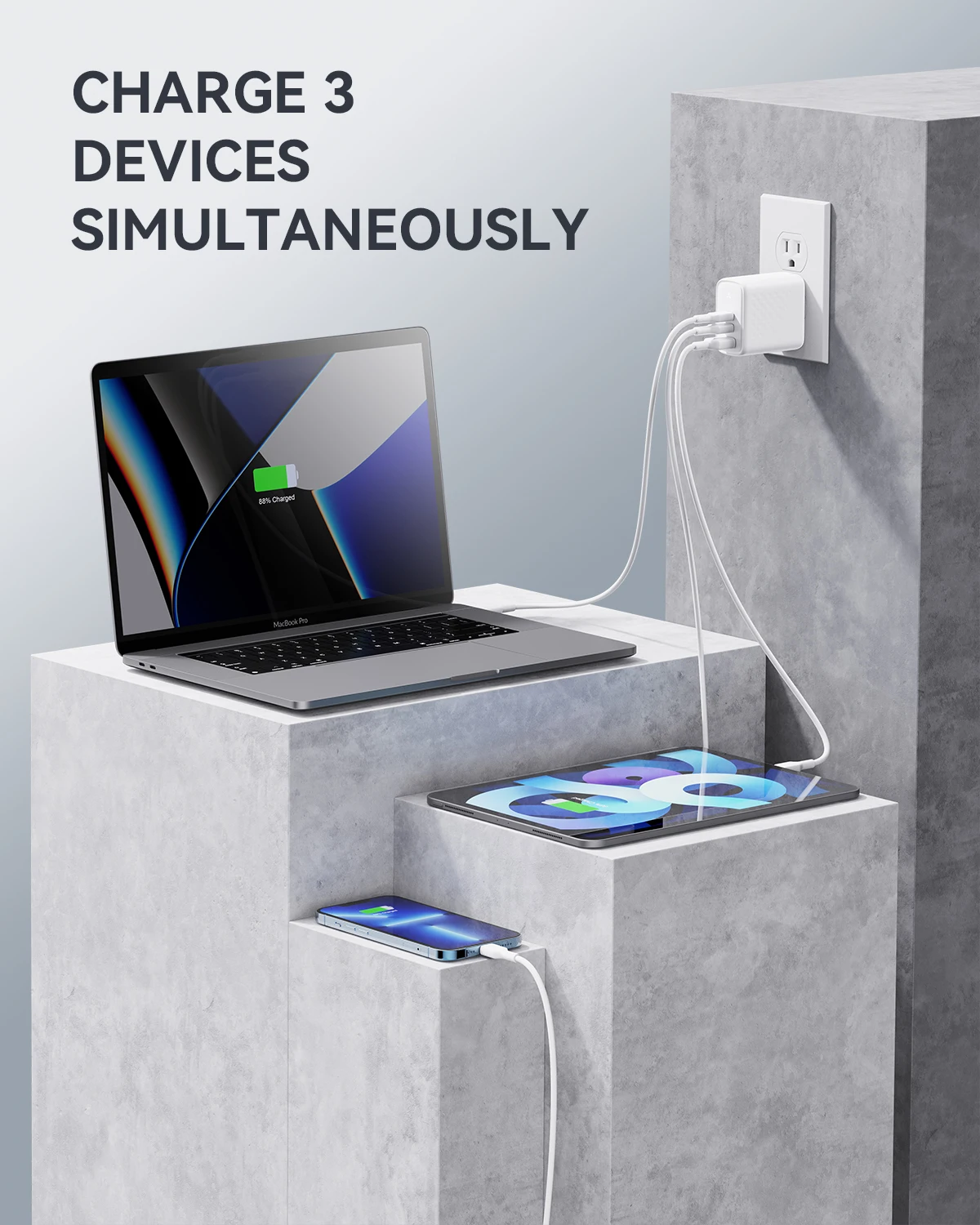 El adaptador VOLTME (cable no incluido) es un compañero ideal para sus viajes. Cargador de pared de 100 vatios disponible para varios dispositivos electrónicos, realmente muy práctico. Pequeño, ligero y compacto, le permite conectar todos los dispositivos como iPad Pro 2021, iPhone 12/13, iPhone X, Macbook Air, etc.