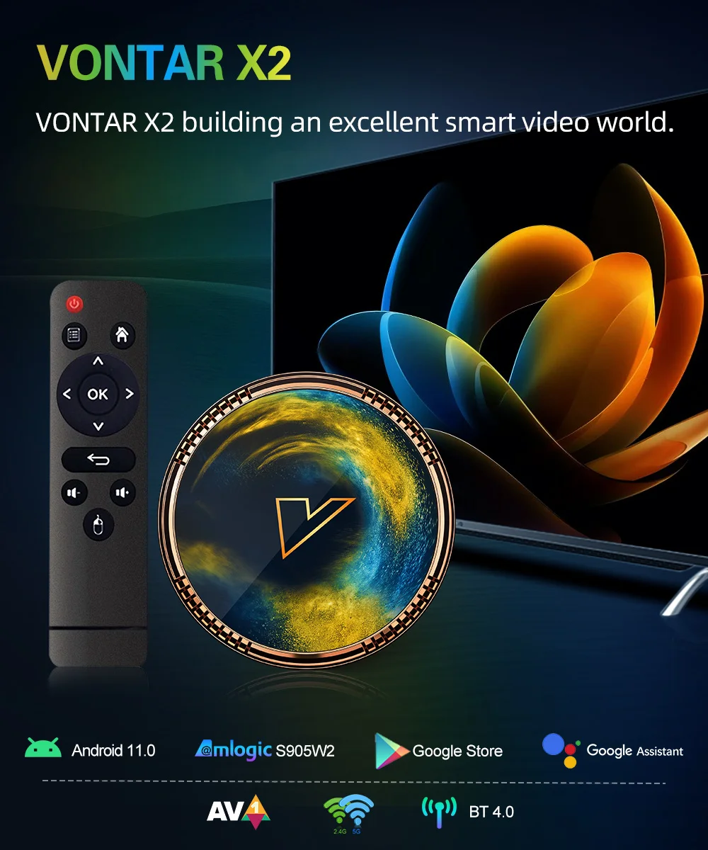 VONTAR X2 Android 11 TV Box con Amlogic S905W2 soporte 4K 60fps AV1