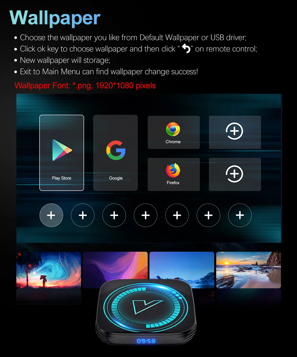 -Elija el fondo de pantalla que te gusta de Default Wallpaper o Usb drvier;