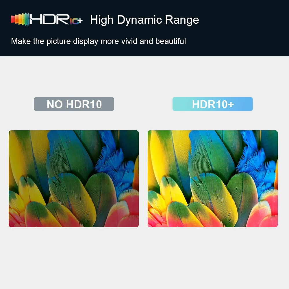 H618 Soporta decodificación de video multi-formatos, Experimenta imágenes nítidas con 4k @ 60fps y 8K video,HDR10 +, soporte H.265, Haz que la imagen se muestre más vívida y hermosa.