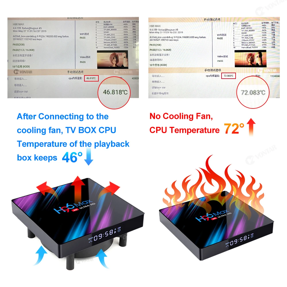 Vantar C1 ventilador de refrigeración para Android TV Box Set Top Box enfriador silencioso inalámbrico silencioso DC 5V alimentación USB 80mm radiador Mini ventilador 80x80x25mm