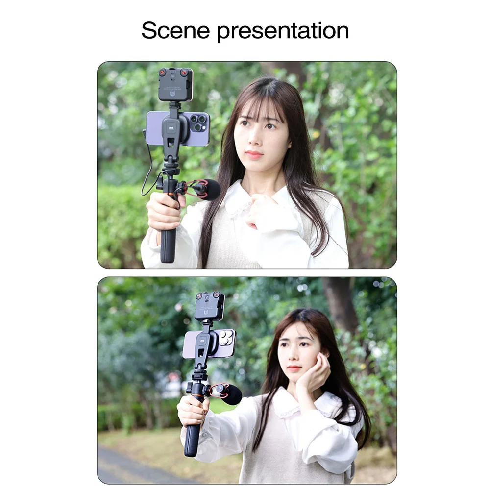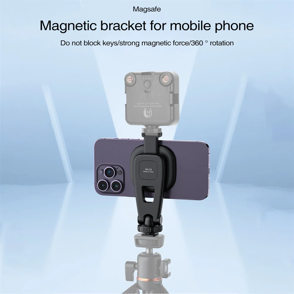 Diseño único: el trípode mag-safe para teléfono móvil está equipado con un zapatero frío, que puede girar 360° y también es extraíble.Puede ampliar micrófonos, luces de relleno y otros equipos para que las fotografías con teléfonos móviles sean más profesionales.