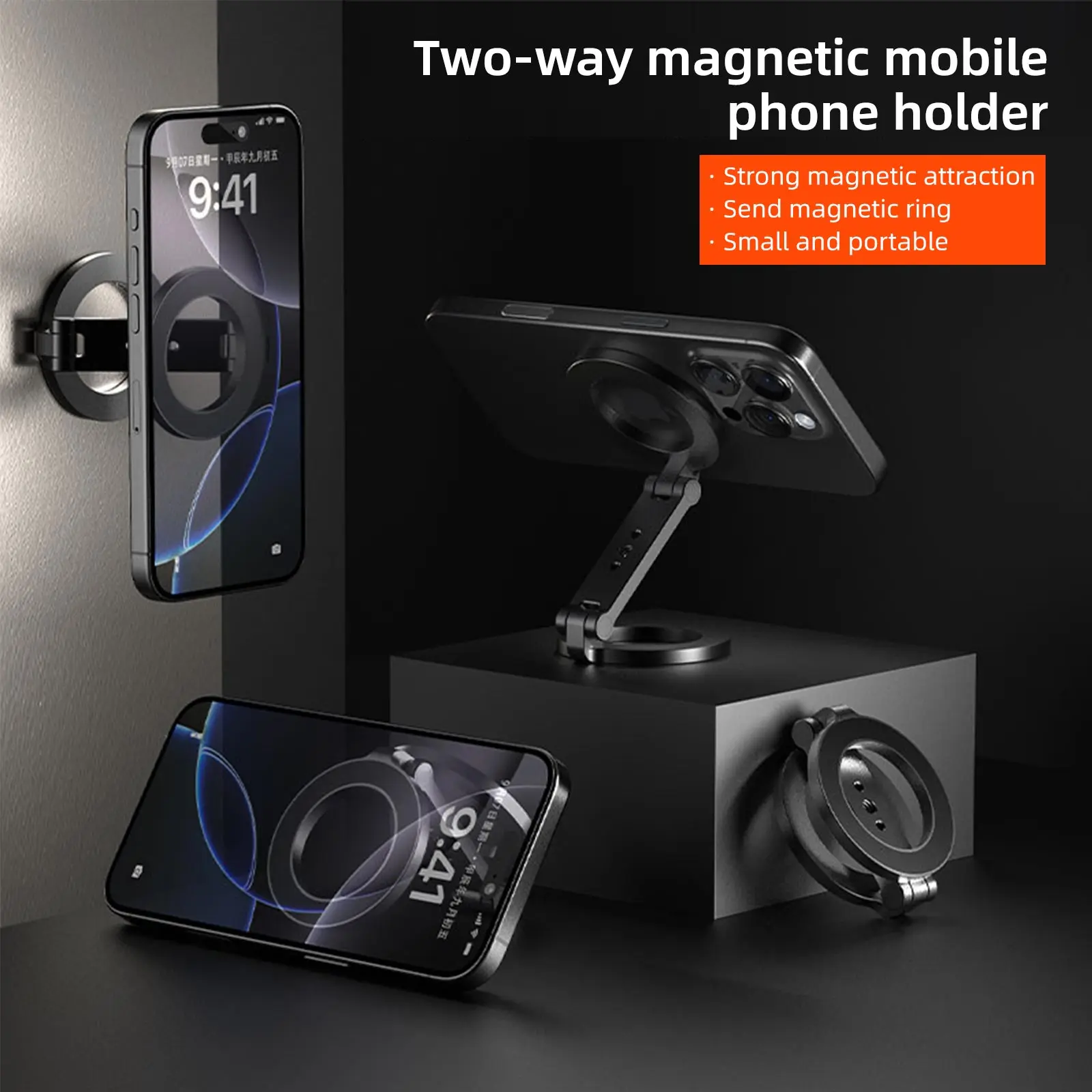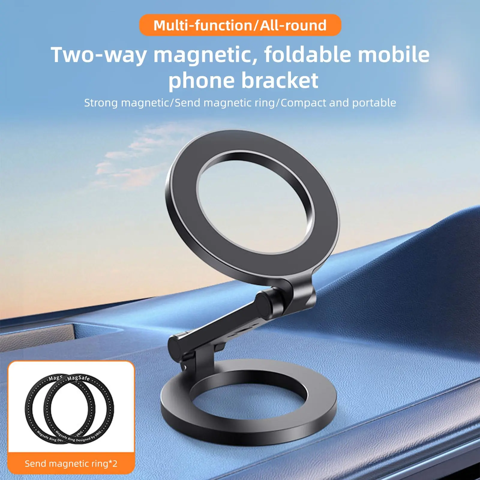 Soporte de anillo magnético doble MG-26: los anillos magnéticos de doble cara alimentan 2800G, pueden soportar un peso de hasta 30N/6LB+, equivalente al peso de 10 dispositivos iPhone 15 Pro Max.Garantiza una solución estable para sostener el teléfono con su diseño magnético, un accesorio imprescindible para camiones, camiones, tractores, montacargas, barcos y vehículos de motor, también puede pegarse en equipos de gimnasio, refrigeradores, puertas cortafuegos de metal, estantes de metal y estantes de metal., superficies magnéticas y otras metálicas, etc.