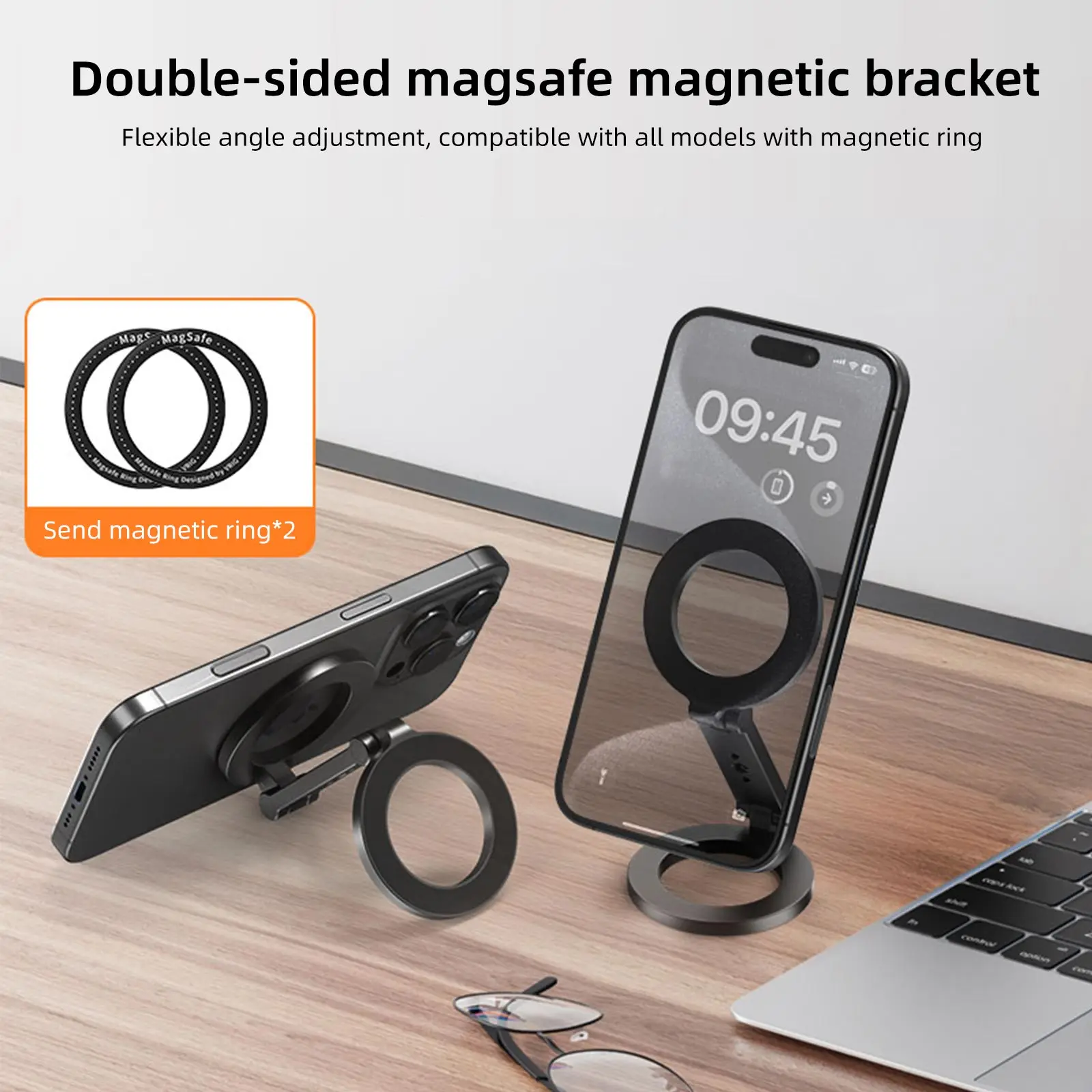 Adecuado para la mayoría de los teléfonos: el soporte magnético dual para iPhone se puede usar directamente para la serie iPhone 16 15 14 Pro Max 13 12 y fundas magnéticas.El anillo de metal incluido en el paquete se puede conectar al iPhone 11 y menos, a teléfonos Android y a fundas que mantienen su teléfono completamente estable y estable.NOTA: Cuando pegue el anillo de metal, espere 24 horas antes de usar el soporte del anillo magnético.