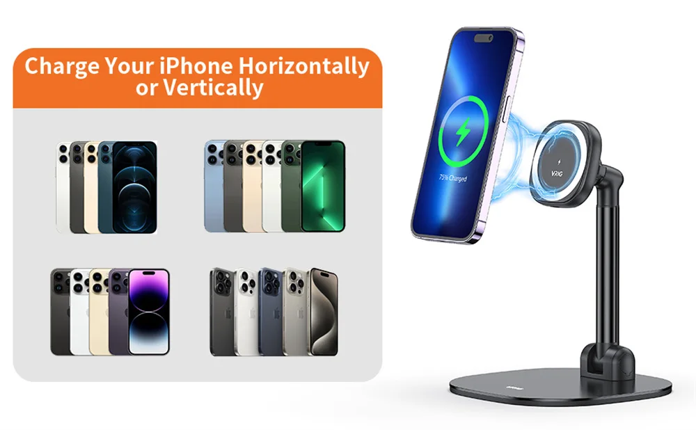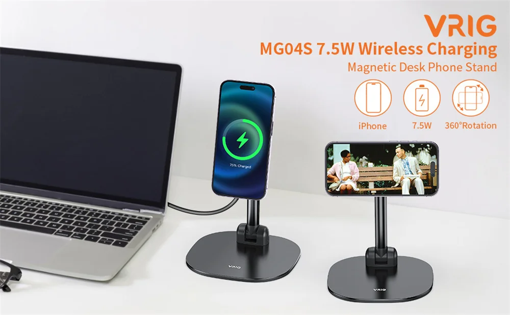 VRIG-soporte magnético de escritorio para teléfono, base con rotación de 2024 grados, altura y ángulo ajustable para MagSafe, iPhone 15, 14, 13, 12 y Samsung, 360