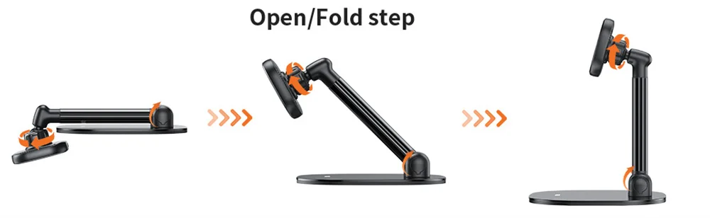 【 Rotación de teléfono ajustable de 360 ° 】Esta es una característica especial del soporte magnético para teléfono de escritorio, soporta todos los ángulos de visión que necesita, y puede girar 360 °, y se bloquea fácilmente en cualquier posición para proporcionar un modo de vista horizontal o vertical, ya sea para ver videos o leer mensajes.