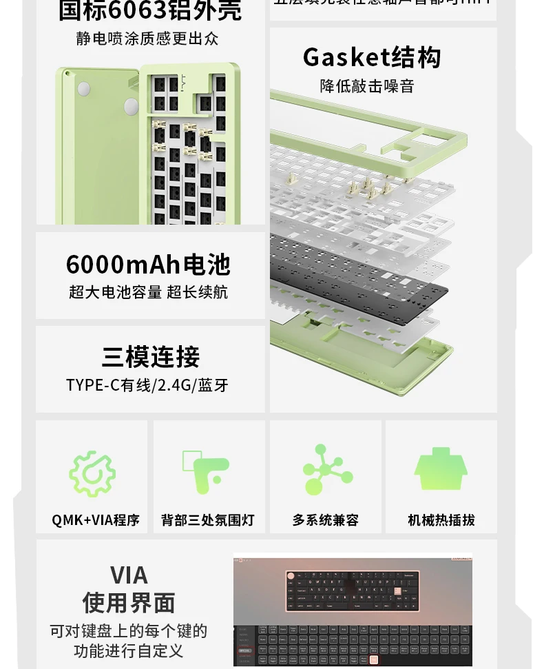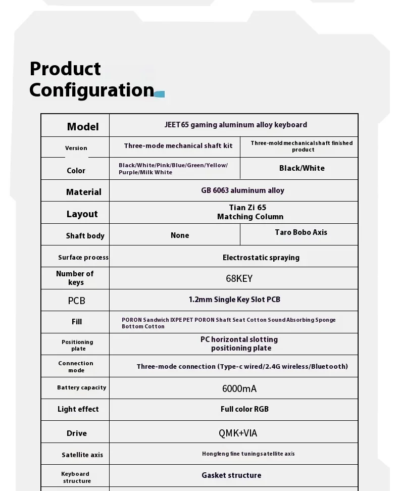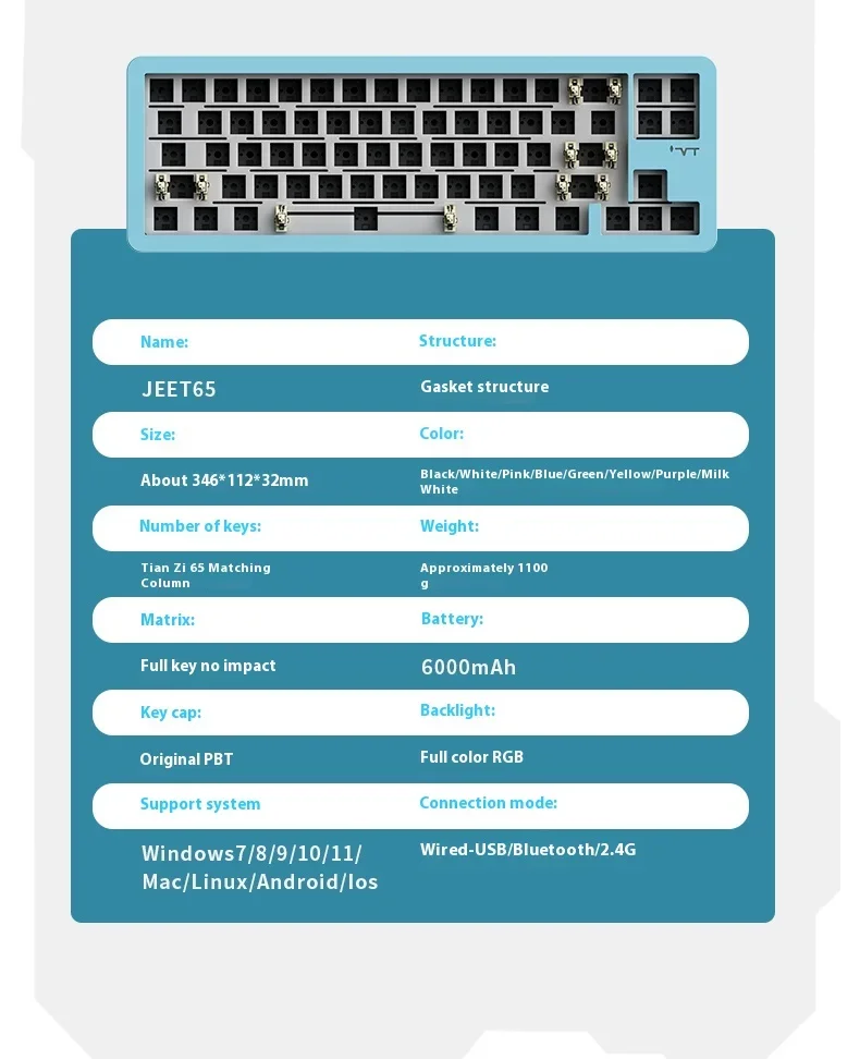VTER JEE65 Kit de teclado mecánico de aluminio 65 diseño Bluetooth tres modos personalizado intercambio en caliente QMK/VIA junta teclado inalámbrico