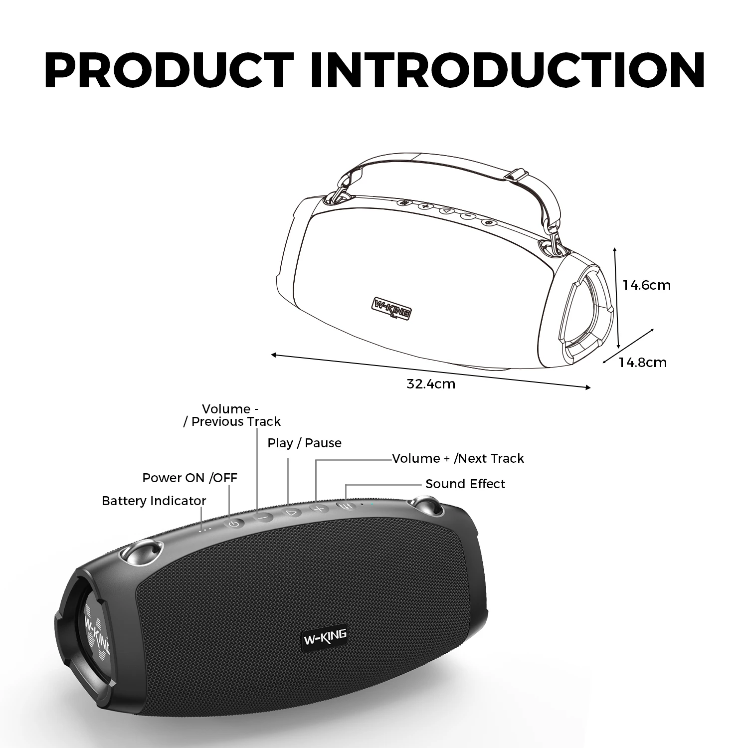 El altavoz Bluetooth W-KING X10 es el primero en el mercado con radiadores pasivos triples, lado de 2 * 3,5" y parte posterior de 4,76".