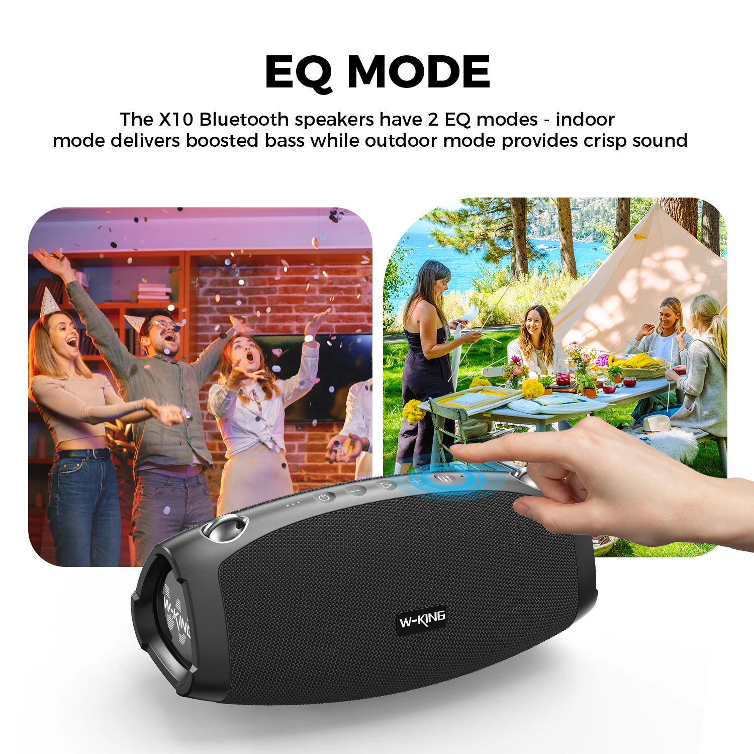 Los parlantes Bluetooth X10 tienen 2 modos de EQ: el modo interior ofrece graves potenciados mientras que el modo exterior proporciona un sonido nítido