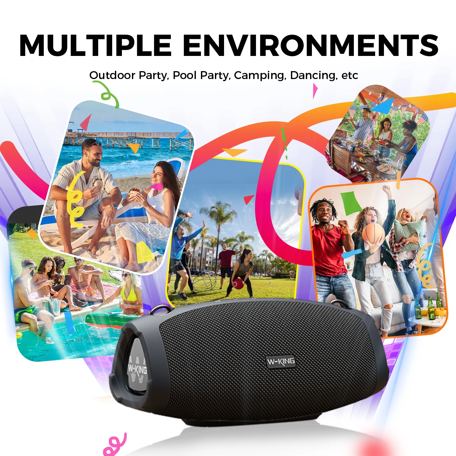 A prueba de humedad, polvo, golpes, perfecto para fiestas en interiores o exteriores, piscinas, playas, camping.