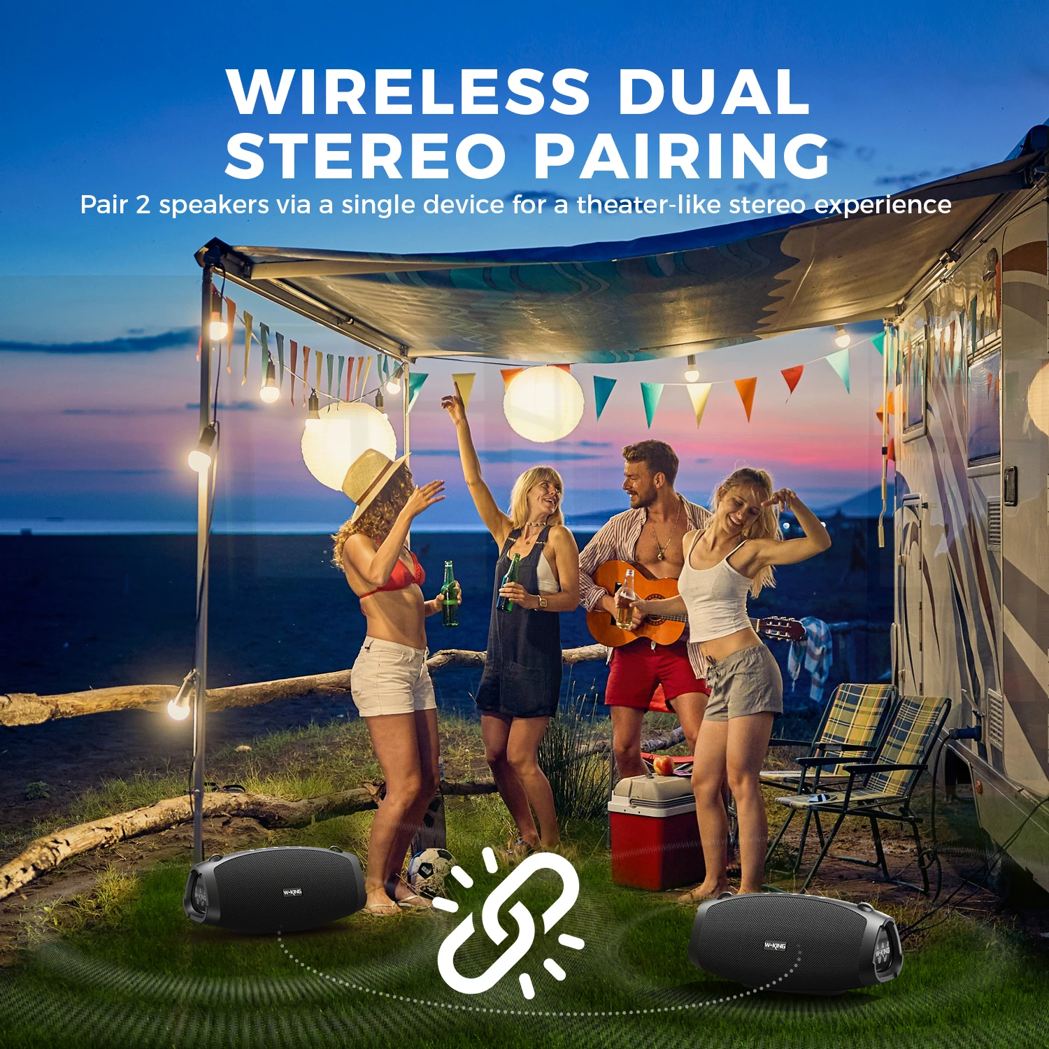 SONIDO ESTÉREO BLUETOOTH 5.0 y 140W HI-FI:Los parlantes portátiles Bluetooth 5.0 de primera calidad Bluetooth inalámbricos proporcionan un increíble alcance inalámbrico de 100 pies, una conexión Bluetooth más rápida y una transmisión de señal más estable.Conecte 2 parlantes bluetooth portátiles para exteriores W-KING X10 en voz alta a través de Bluetooth para formar un sistema inalámbrico de canales izquierdo y derecho, amplifique su experiencia auditiva a niveles épicos para una gran fiesta rock con el doble de los graves (X10 y X10-1 no se pueden emparejar).