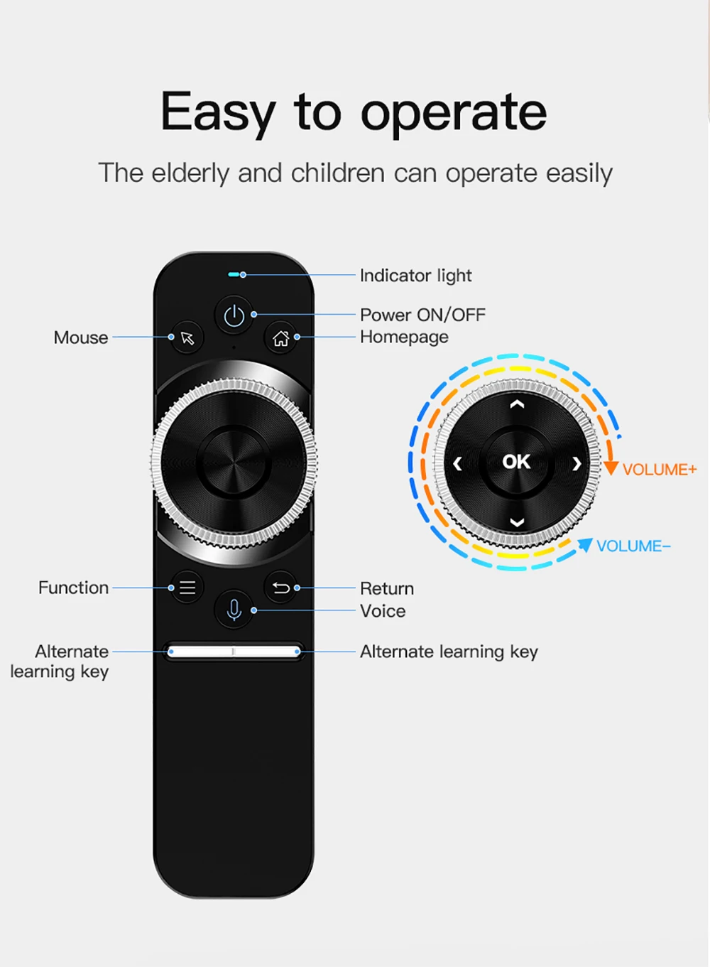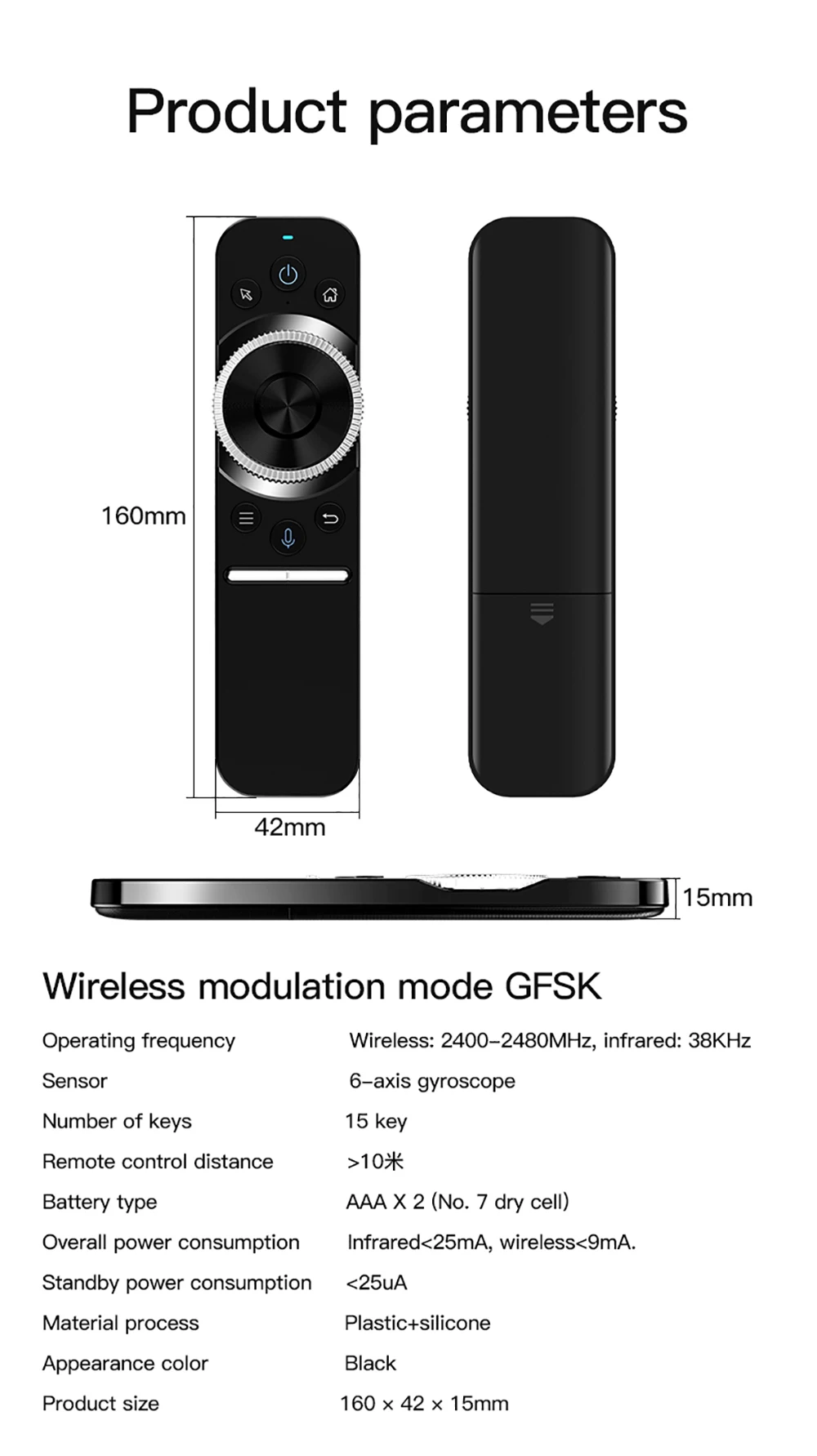 Comprar W1S-ratón inalámbrico de 2,4G, dispositivo con Control remoto por voz, sensor de movimiento, IR, aprendizaje, para Android, decodificador, Mini PC