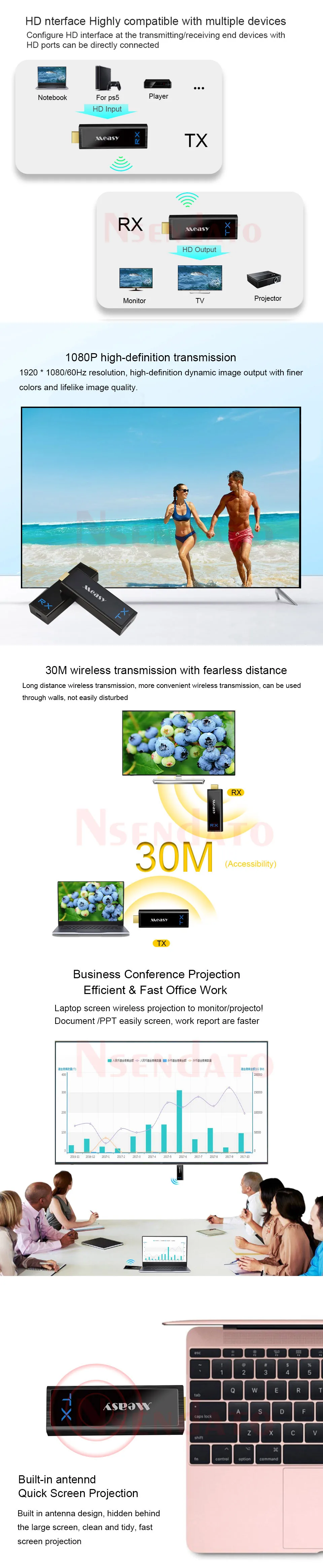 W2H NANO 1080P 30m 100FT Wireless transmission WIFI HDMI Extender Transmitter HD Sender transmission Kit For PS4 DVD Projector