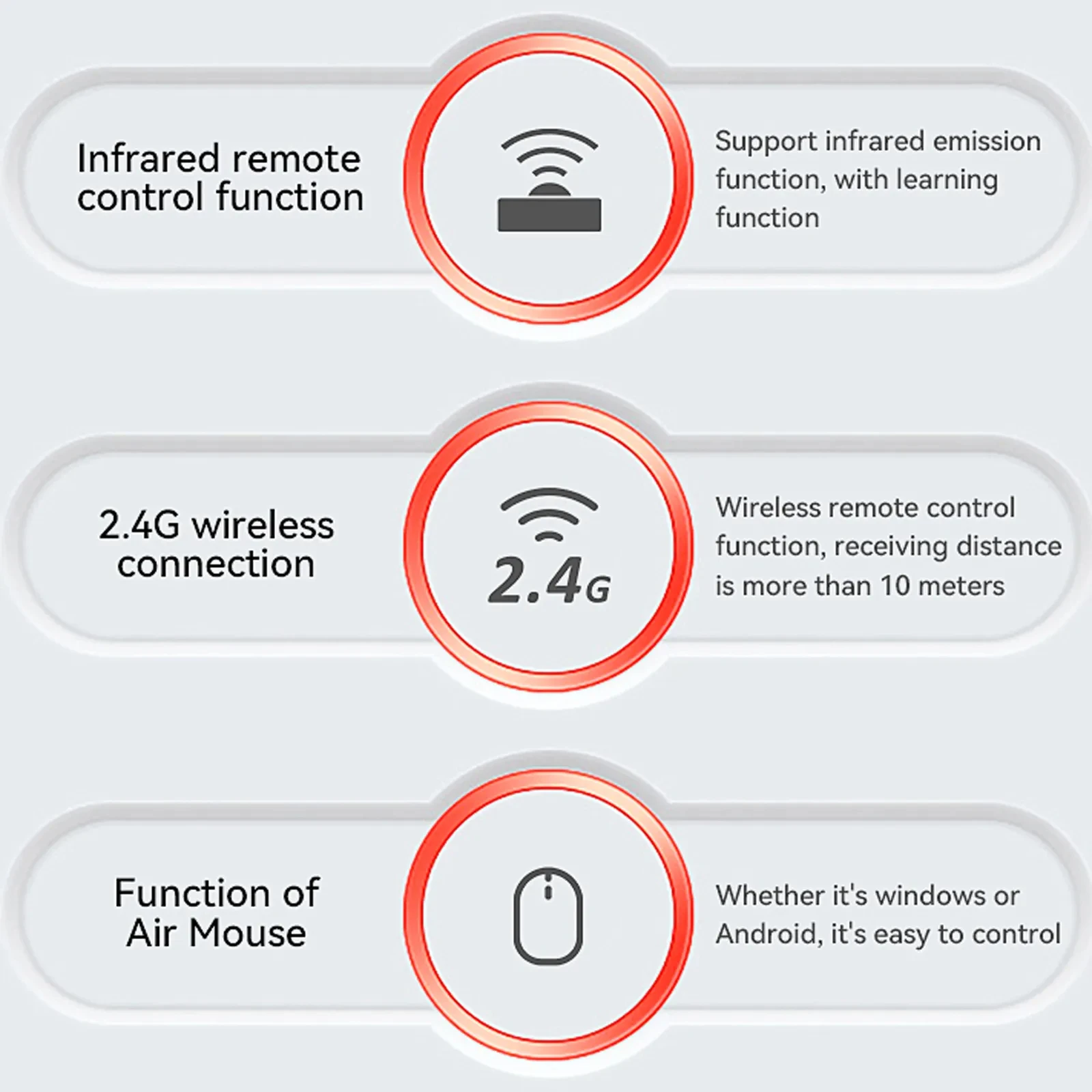 2. This is a replacement remote control, which only supports Android smart boxes and PCs. It does not support brand TVs, such as Apple, Samsung, Xiaomi...