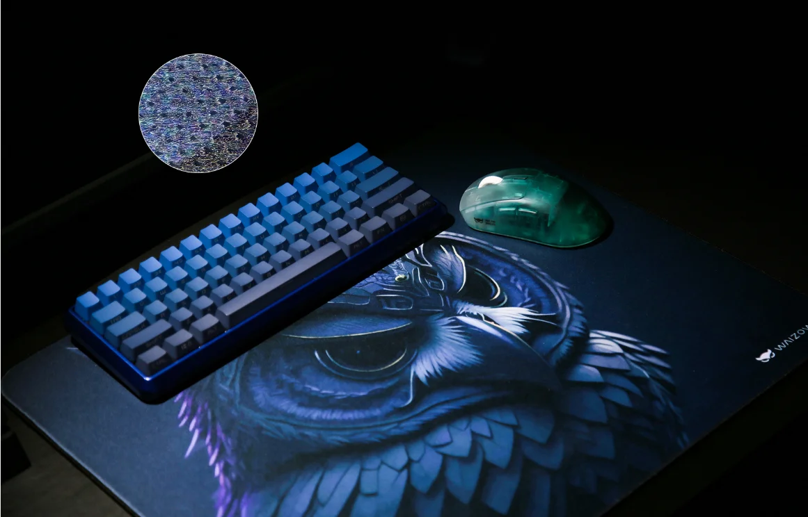 WAIZOWL ha diseñado la nueva alfombrilla para mouse de la serie para juegos Fukurou con una superficie superior finamente tejida.El material de la superficie es agradable para la piel y tiene un acabado de textura suave.Es fácil de usar y no te rayará las manos mientras lo usa.