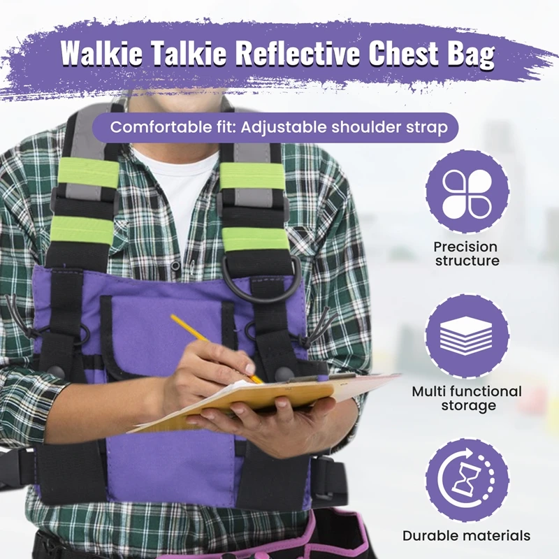 Este arnés de pecho de radio bidireccional reflectante especialmente diseñado es perfecto para quienes necesitan comunicación accesible y con manos libres.Perfecto para profesionales en seguridad, coordinación de eventos o actividades al aire libre.Este arnés garantiza que su radio o walkie talkie esté siempre al alcance y seguro.