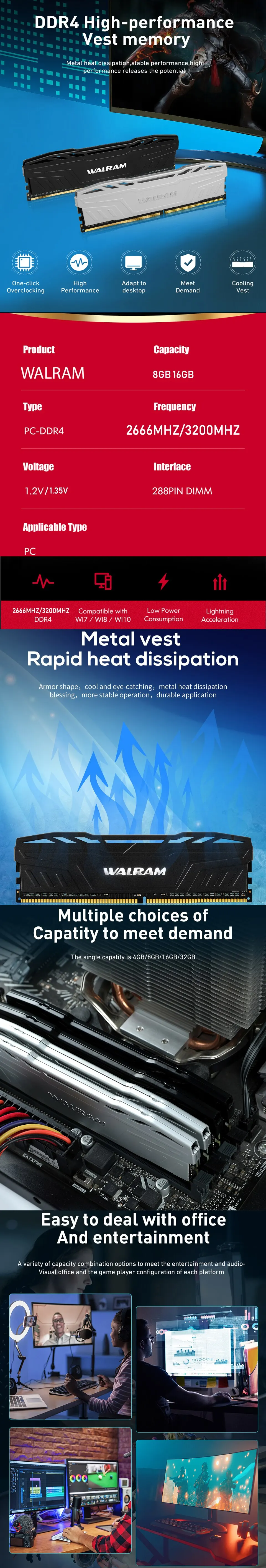 Comprar Walram Gaming Ram Memory Computer Memoria Rams DDR4 8GB 16GB 2666MHZ 3200MHZ UDIMM para escritorio
