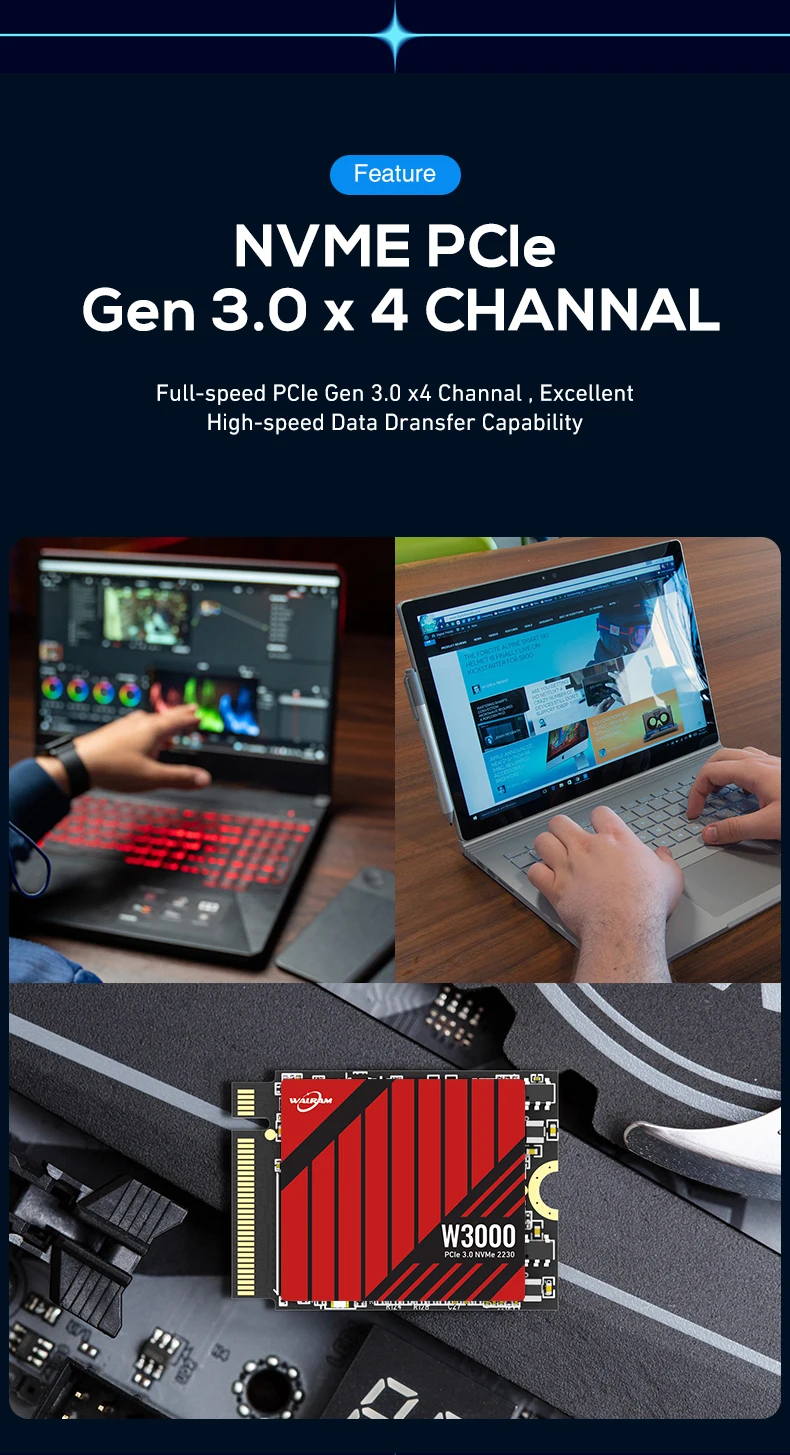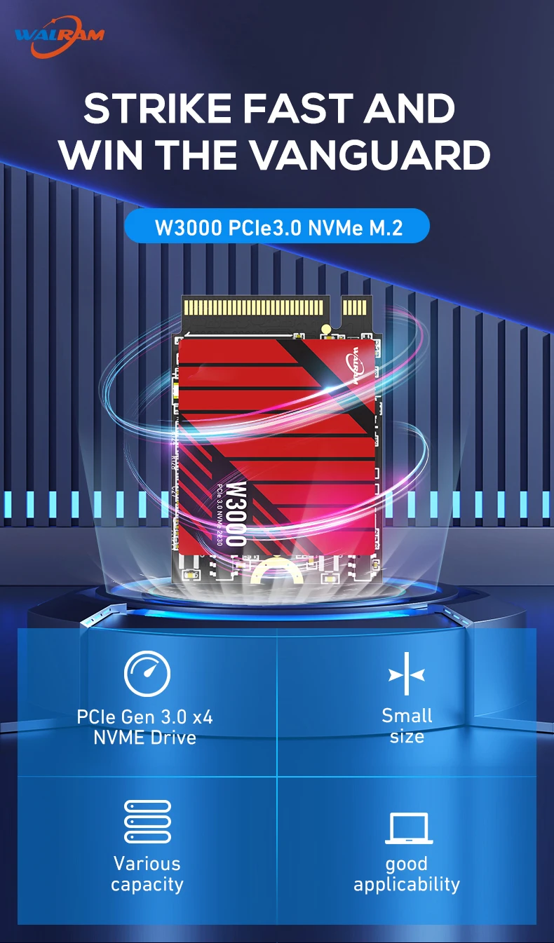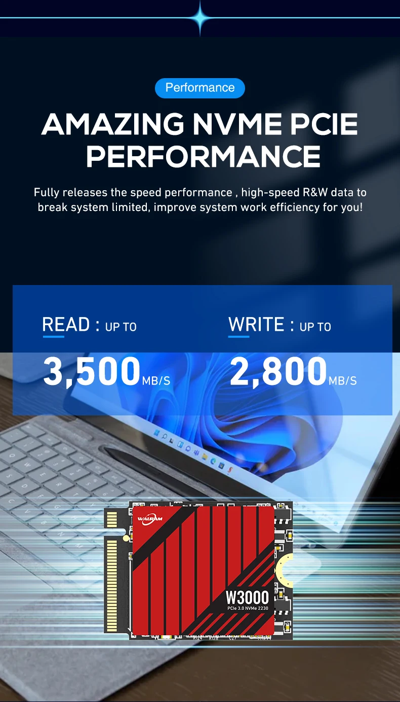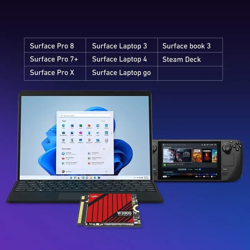WALRAM M.2 NVMe SSD 1TB 512GB 3500 M/S 2230 PCIe3.0x4 Unidad de estado sólido interna para Microsoft Surface Pro 7 + 8 cubierta de vapor 3,3 V 3A