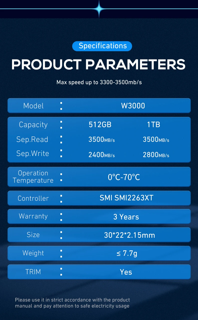 Especificaciones detalladas:Capacidad-1TB / 512GB