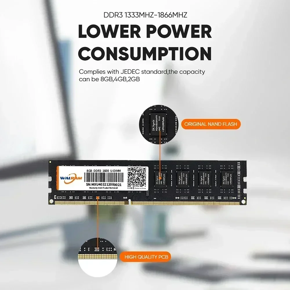 • Alta capacidad de memoria:La RAM WALRAM DDR3 cuenta con una alta capacidad de memoria de hasta 32 GB, lo que garantiza un funcionamiento fluido para su computadora de escritorio.